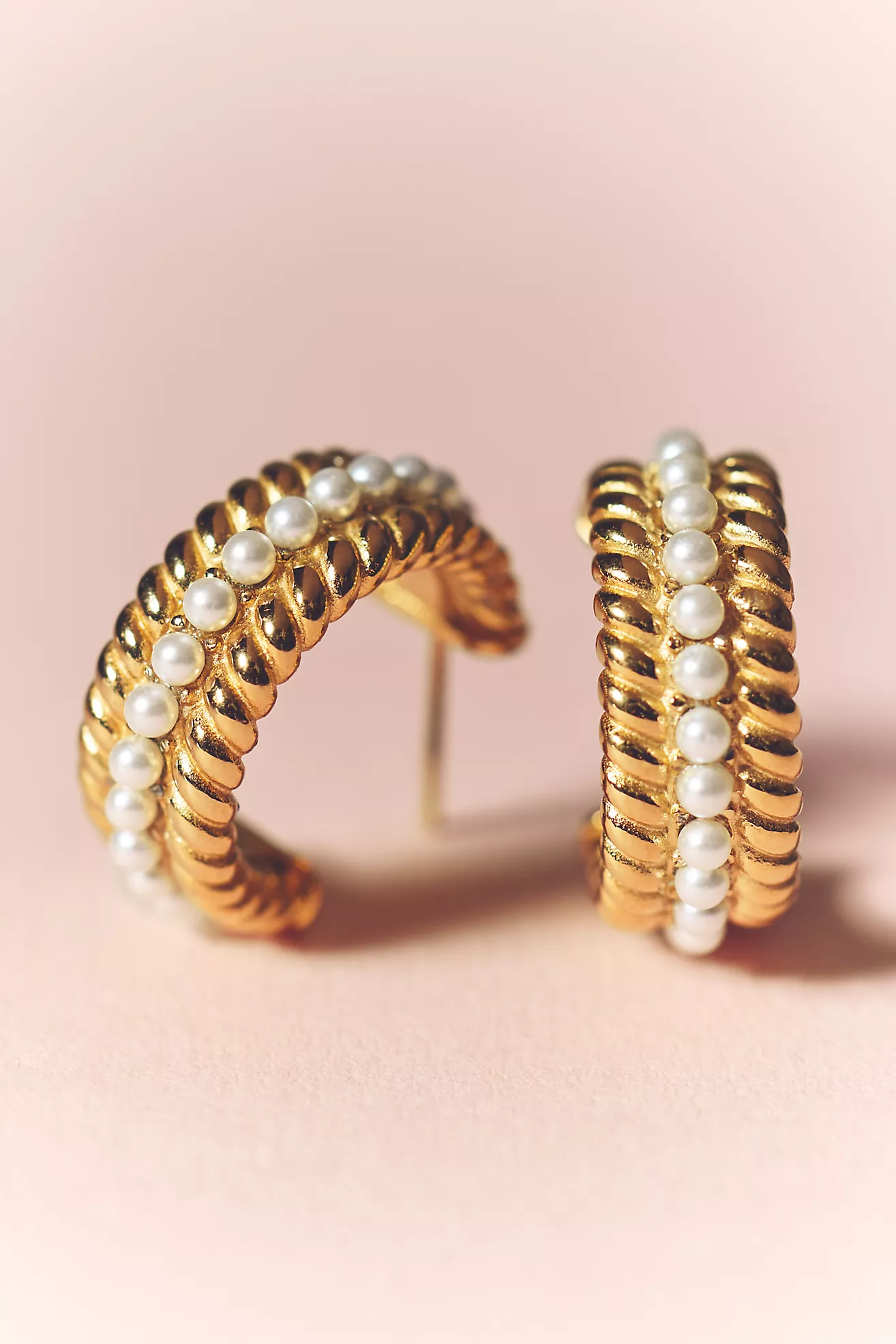 Braided Pearl Hoop Earrings
