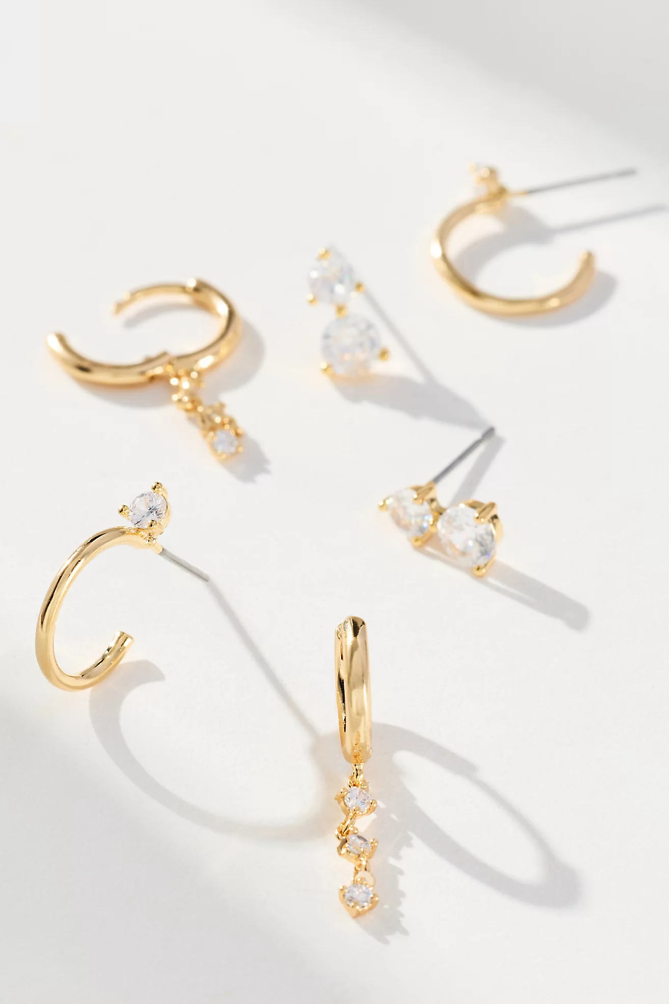 Thin Crystal Drop Earrings, Set of 3