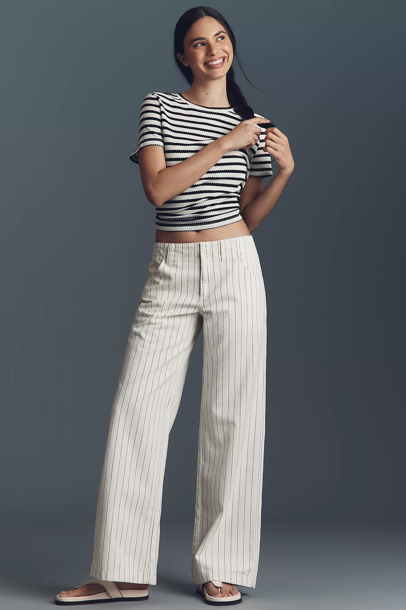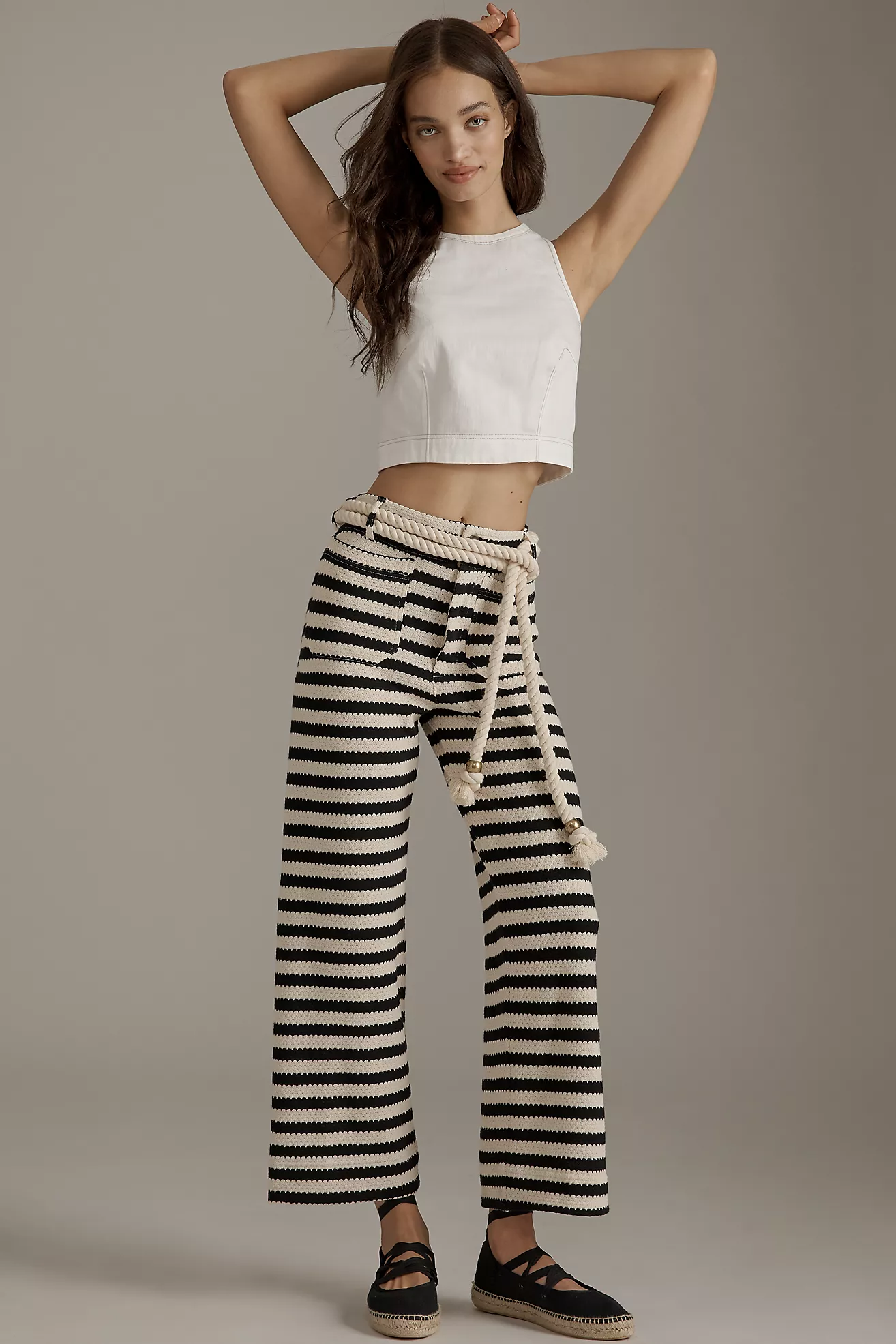 The Colette Striped Knit Crop Wide-Leg Pants by Maeve