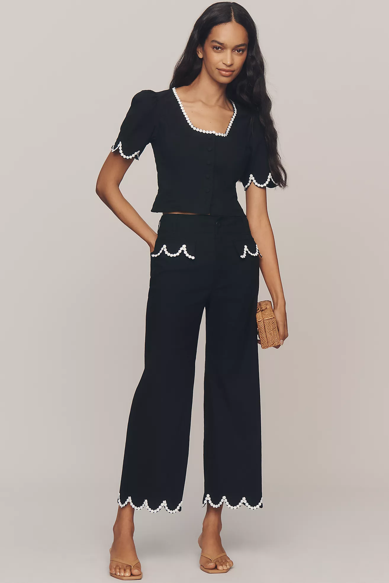 The Colette Scalloped Crop Wide-Leg Pants by Maeve