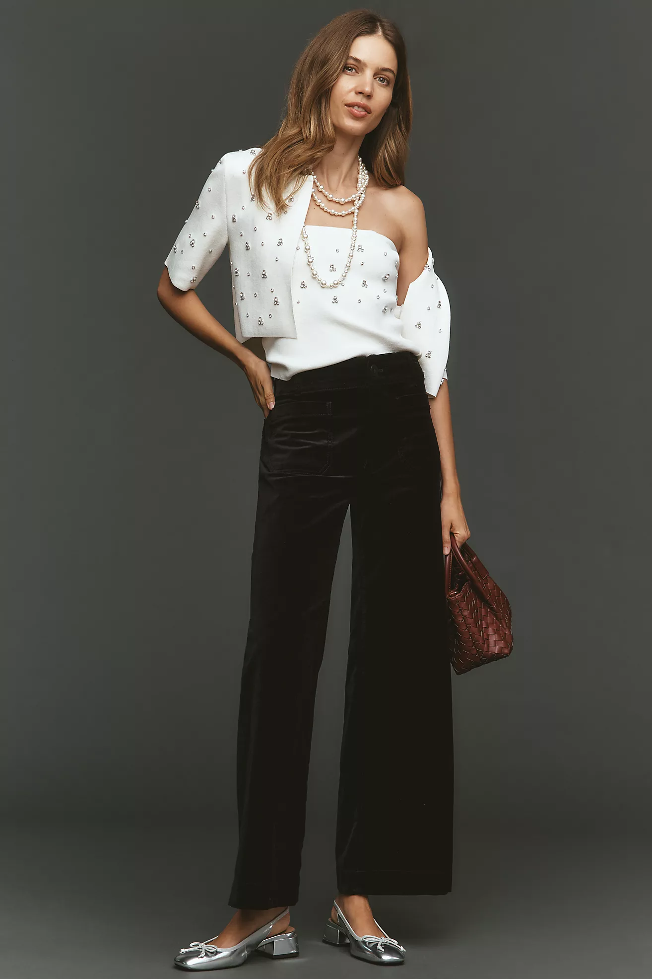 The Colette Crop Velvet Ruffle-Hem Pants by Maeve