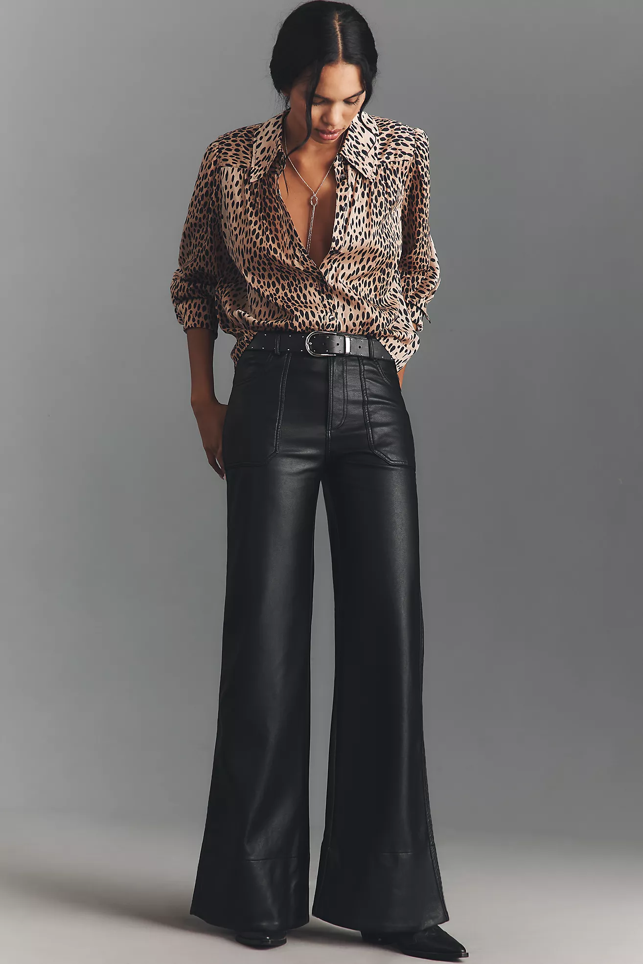 The Rylan Faux-Leather Relaxed High-Rise Flare Pants by Pilcro