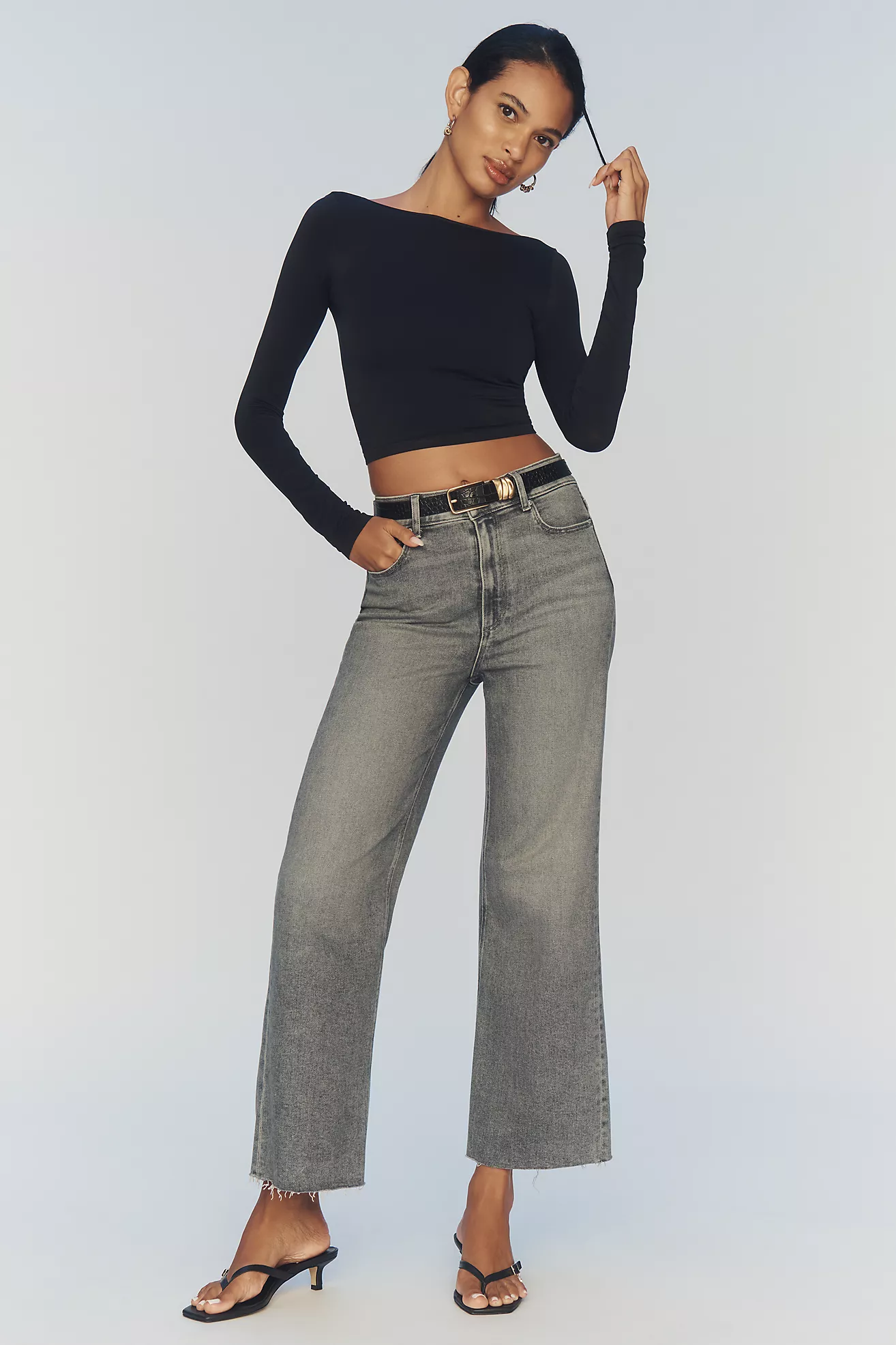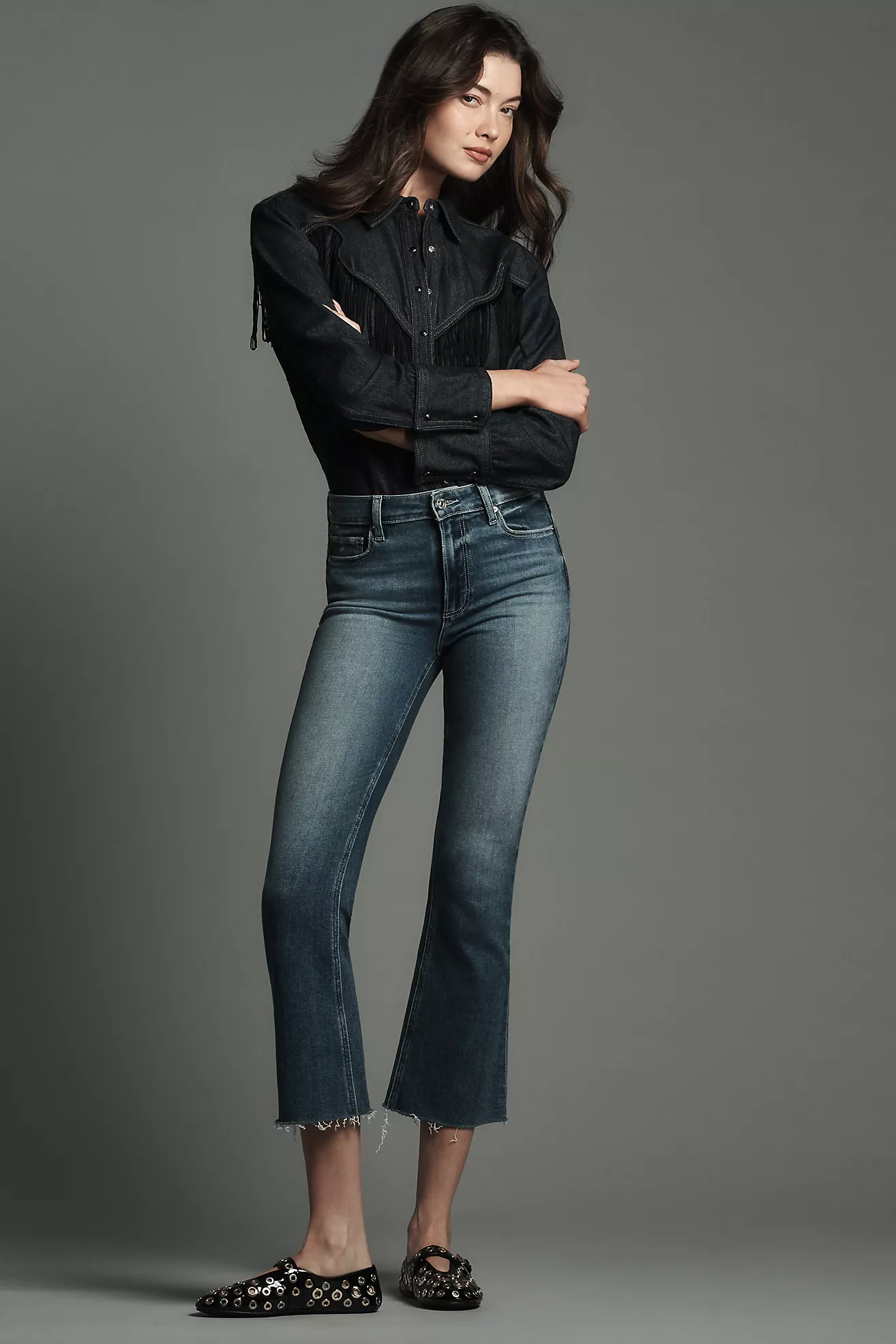 PAIGE Colette Petite High-Rise Raw-Hem Crop Flare Jeans