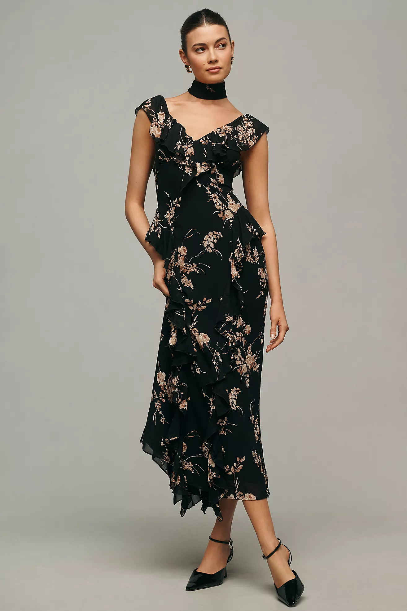 BHLDN Jenny V-Neck Cape Satin Maxi Dress
