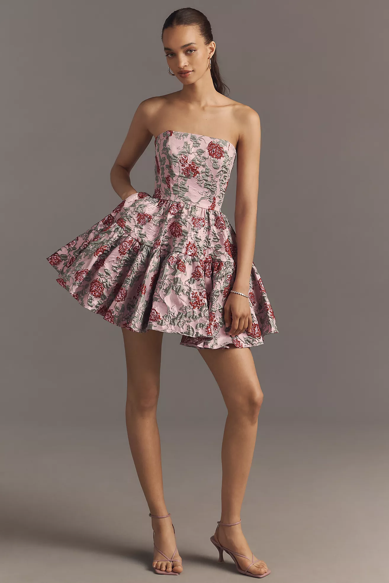 Mac Duggal Strapless Brocade Fit & Flare Mini Dress