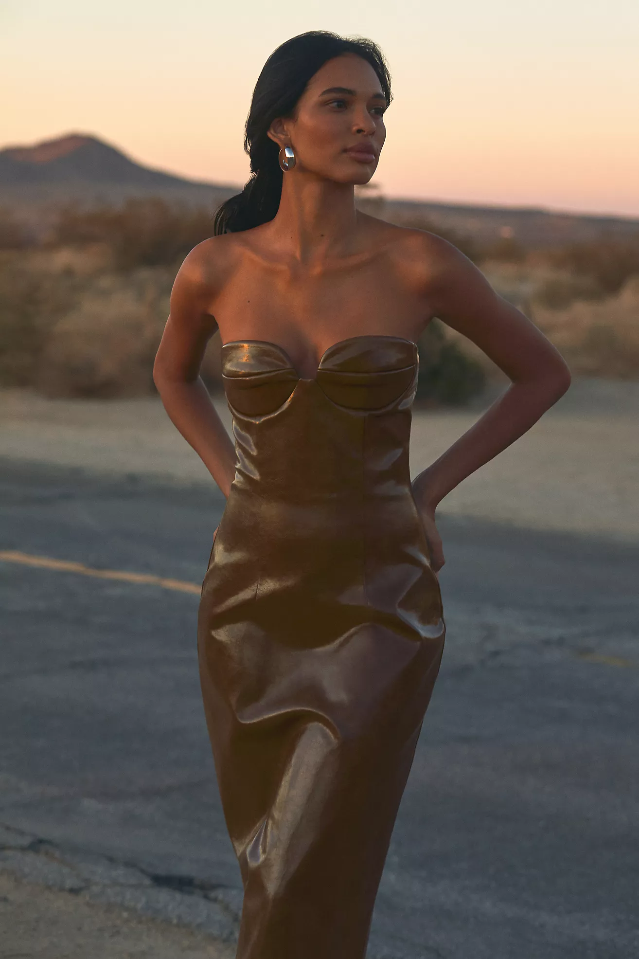 The Soleil Faux-Leather Strapless Midi Dress