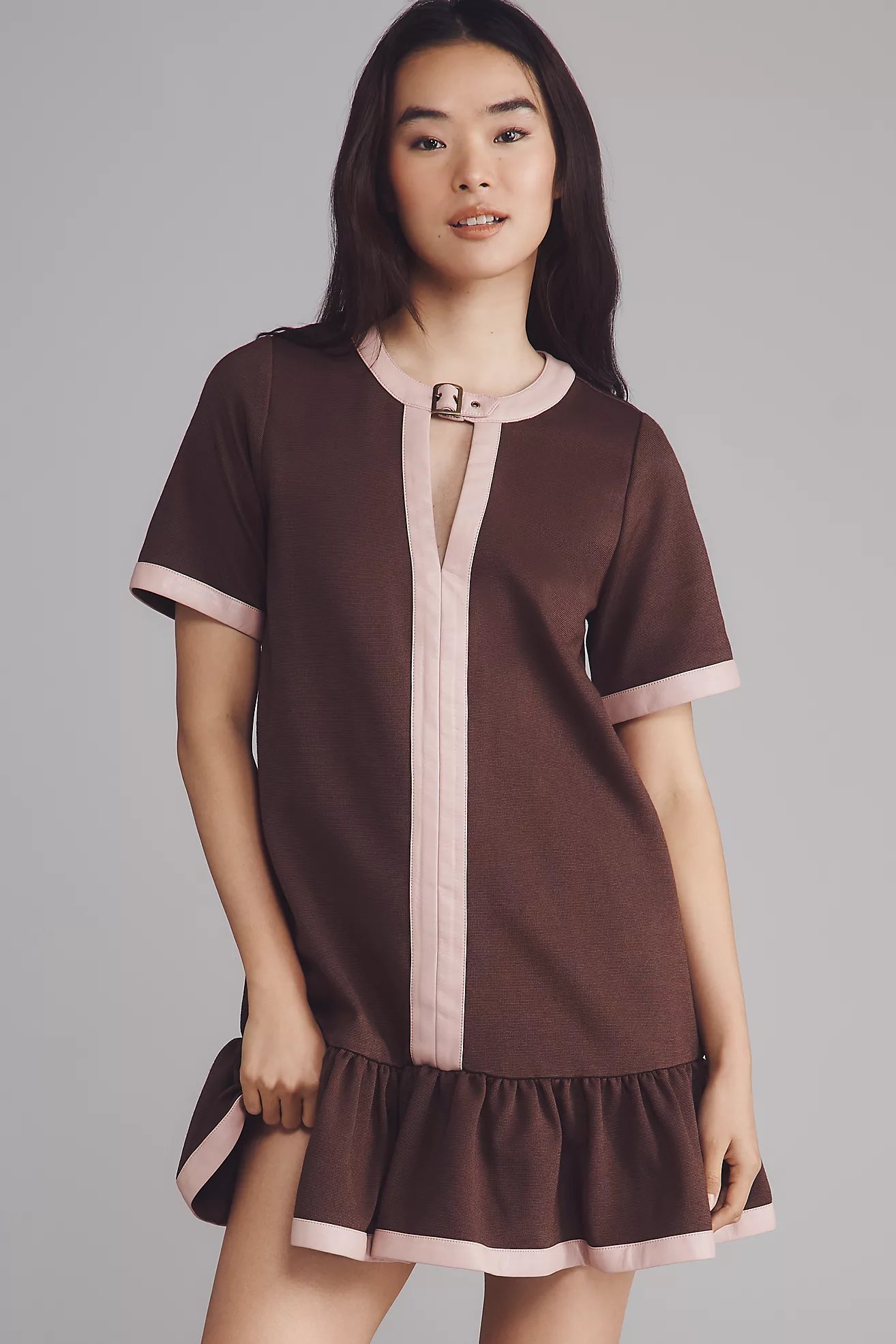 Maeve Colorblock Leather-Trim Drop-Waist Mini Dress
