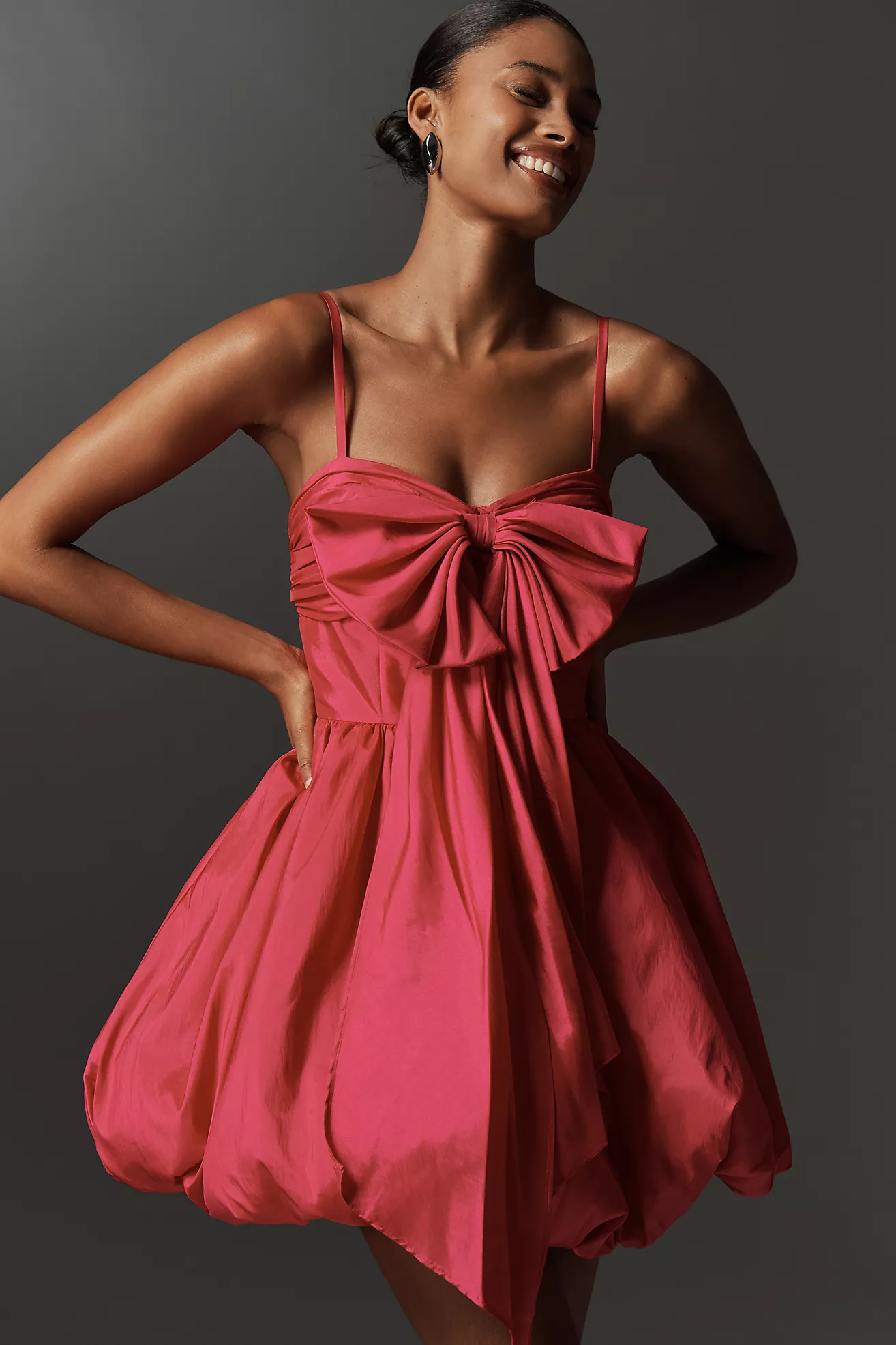 BHLDN Sleeveless Square-Neck Corset Satin Mini Dress