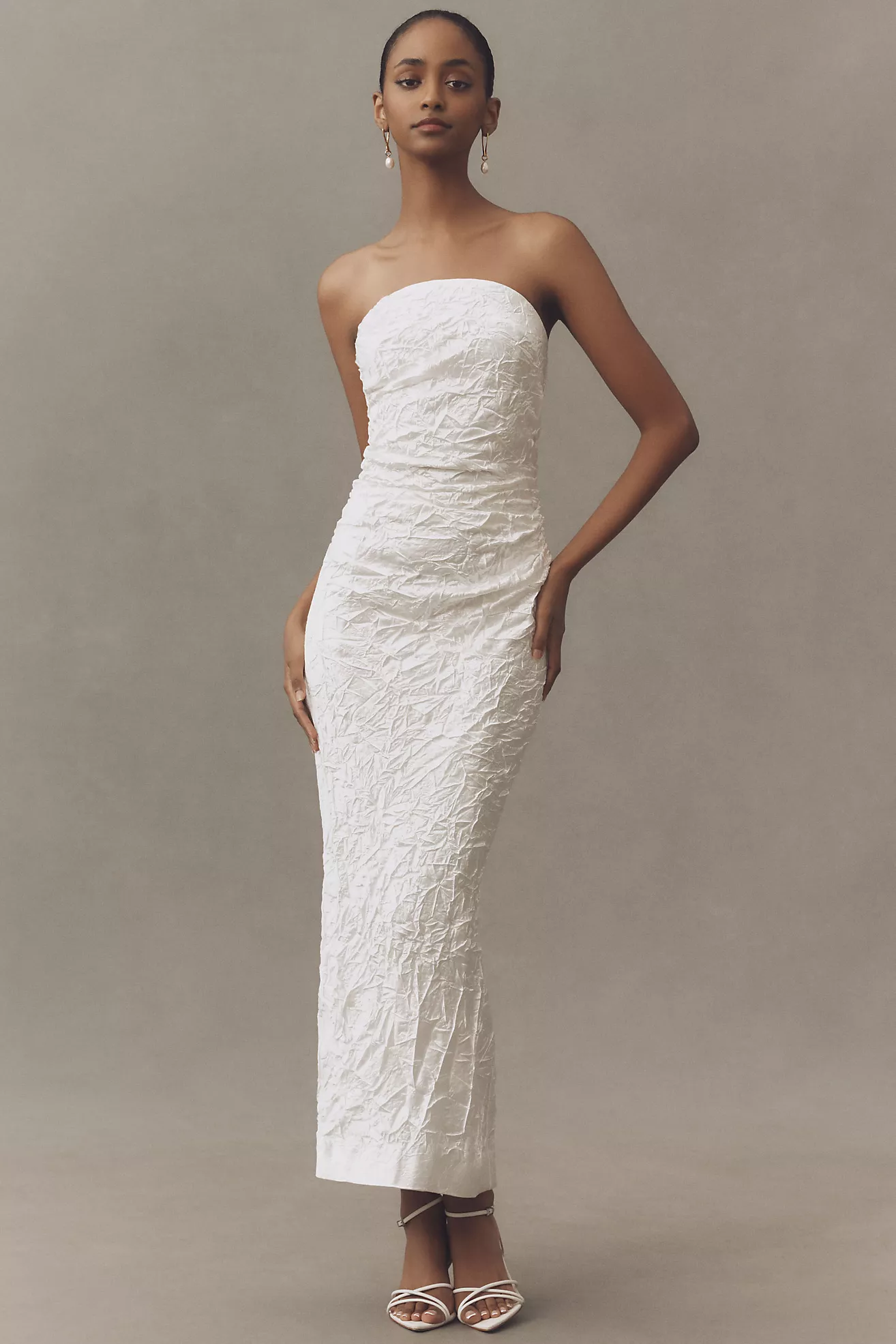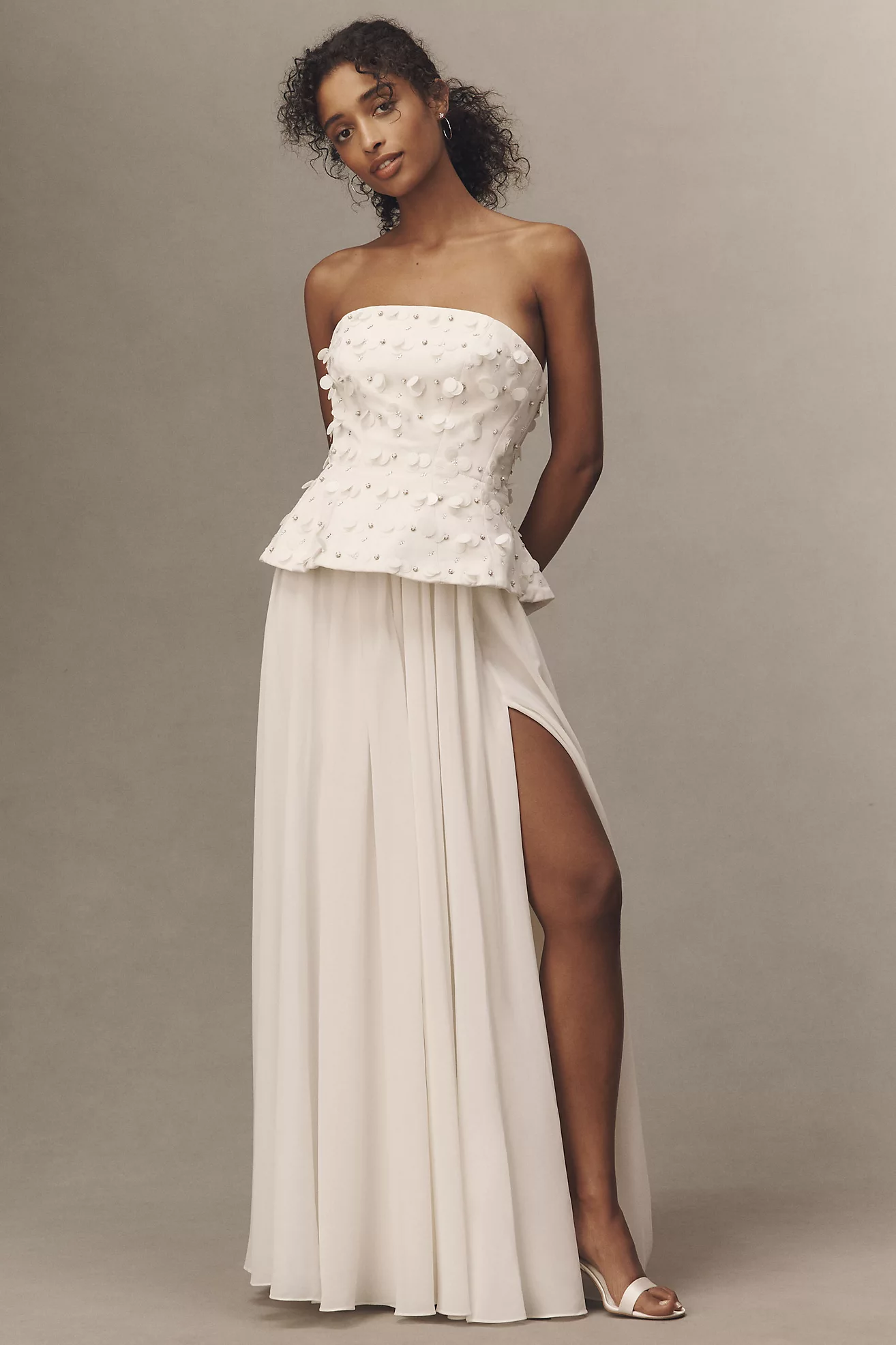 BHLDN Strapless Embellished Peplum Pleated Maxi Dress