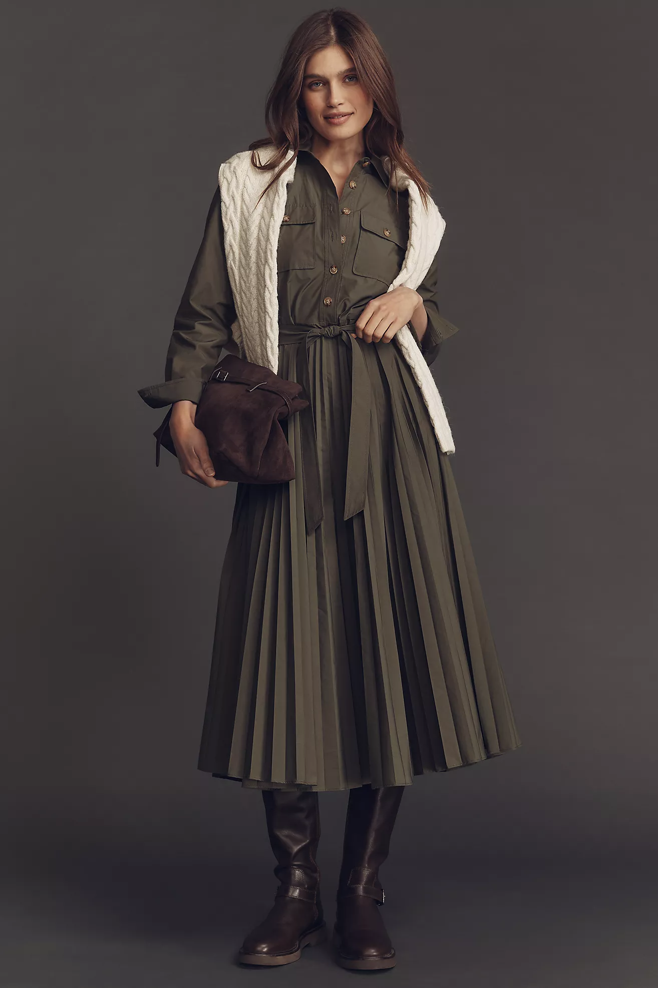 Derek Lam 10 Crosby Kenza Long-Sleeve Pleated Shirt Dress