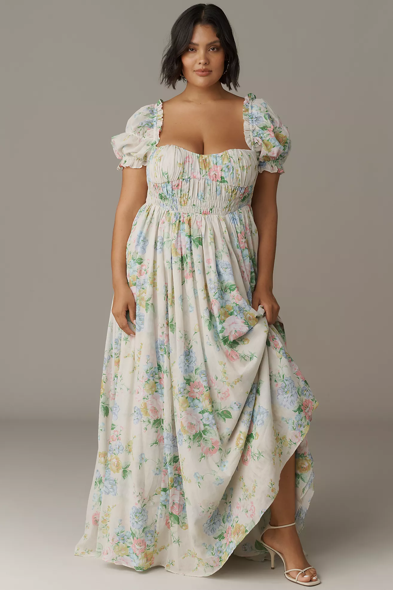 Selkie Renfaire Plus Short-Sleeve Square-Neck Maxi Dress