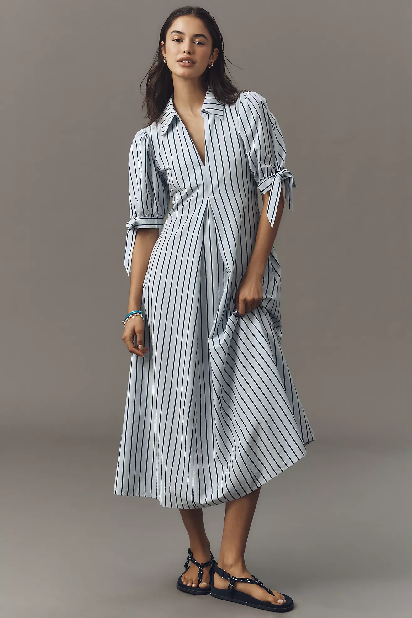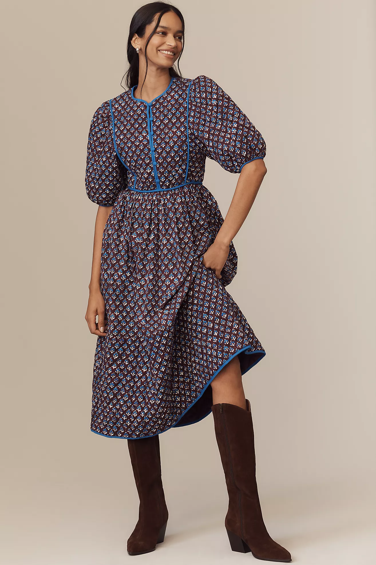 Hunter Bell Brenner Quilted Puff-Sleeve Midi Dress