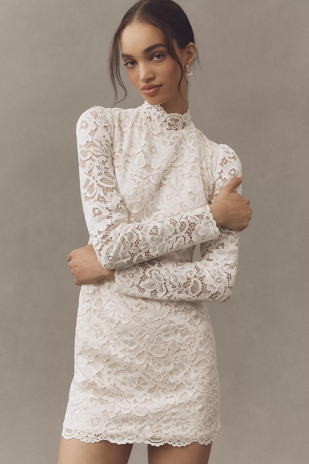 BHLDN Long-Sleeve Mock-Neck Lace Stretch Satin Mini Dress