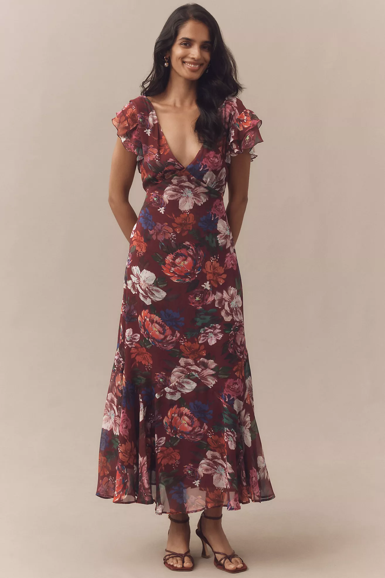 BHLDN Flutter-Sleeve Plunging Maxi Dress