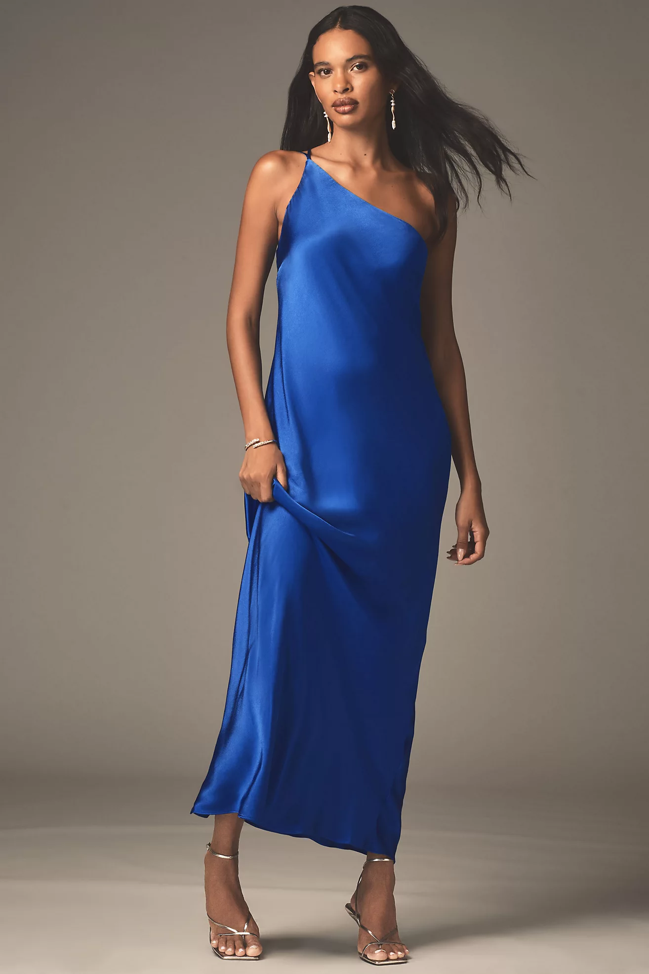 Mare Mare Asymmetrical Slim Satin Maxi Dress