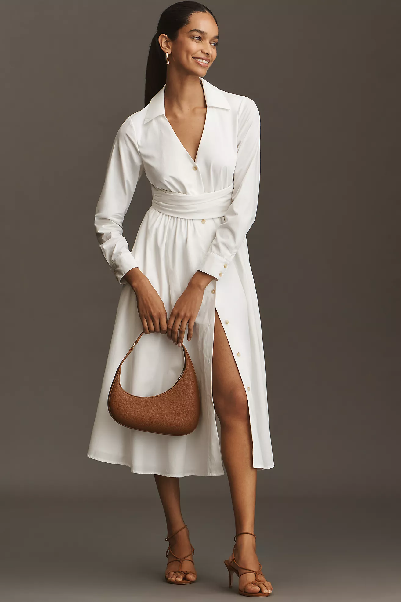 Hutch Long-Sleeve V-Neck Midi Shirt Dress