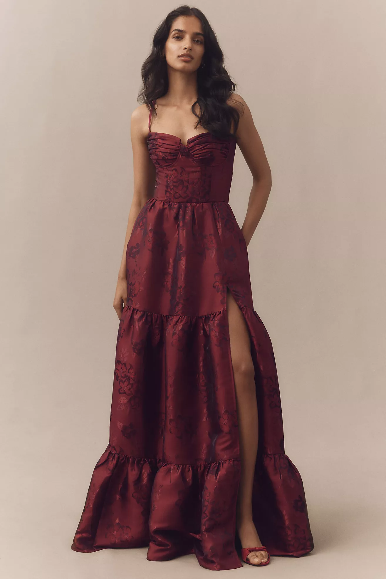 V. Chapman Lucetta Corset Tiered Brocade Maxi Dress