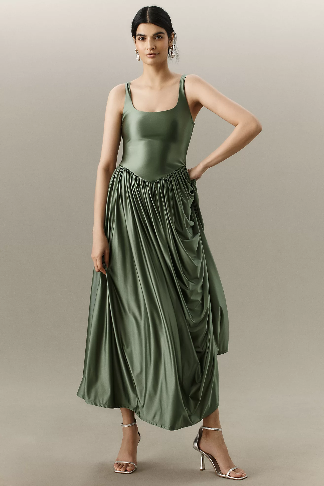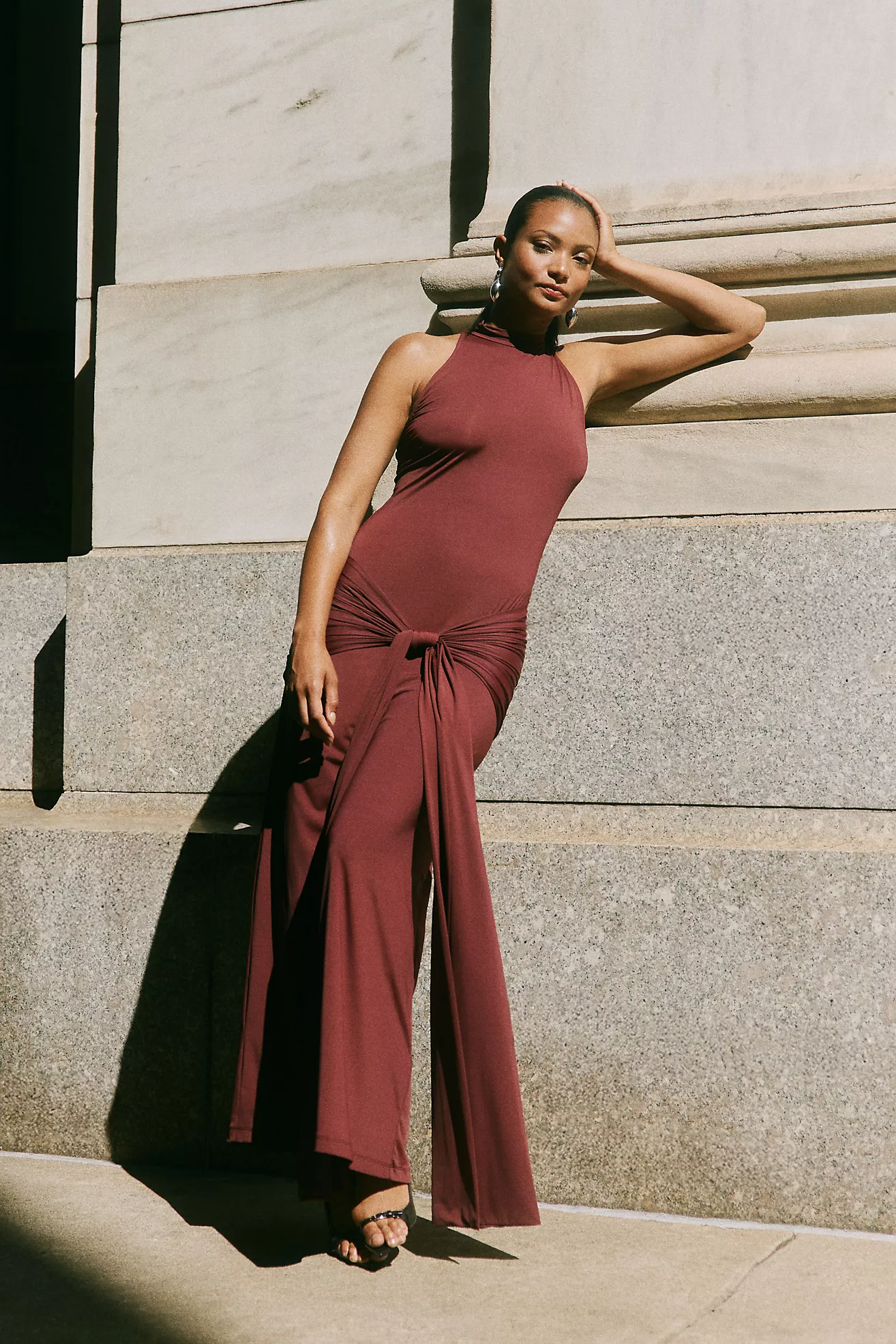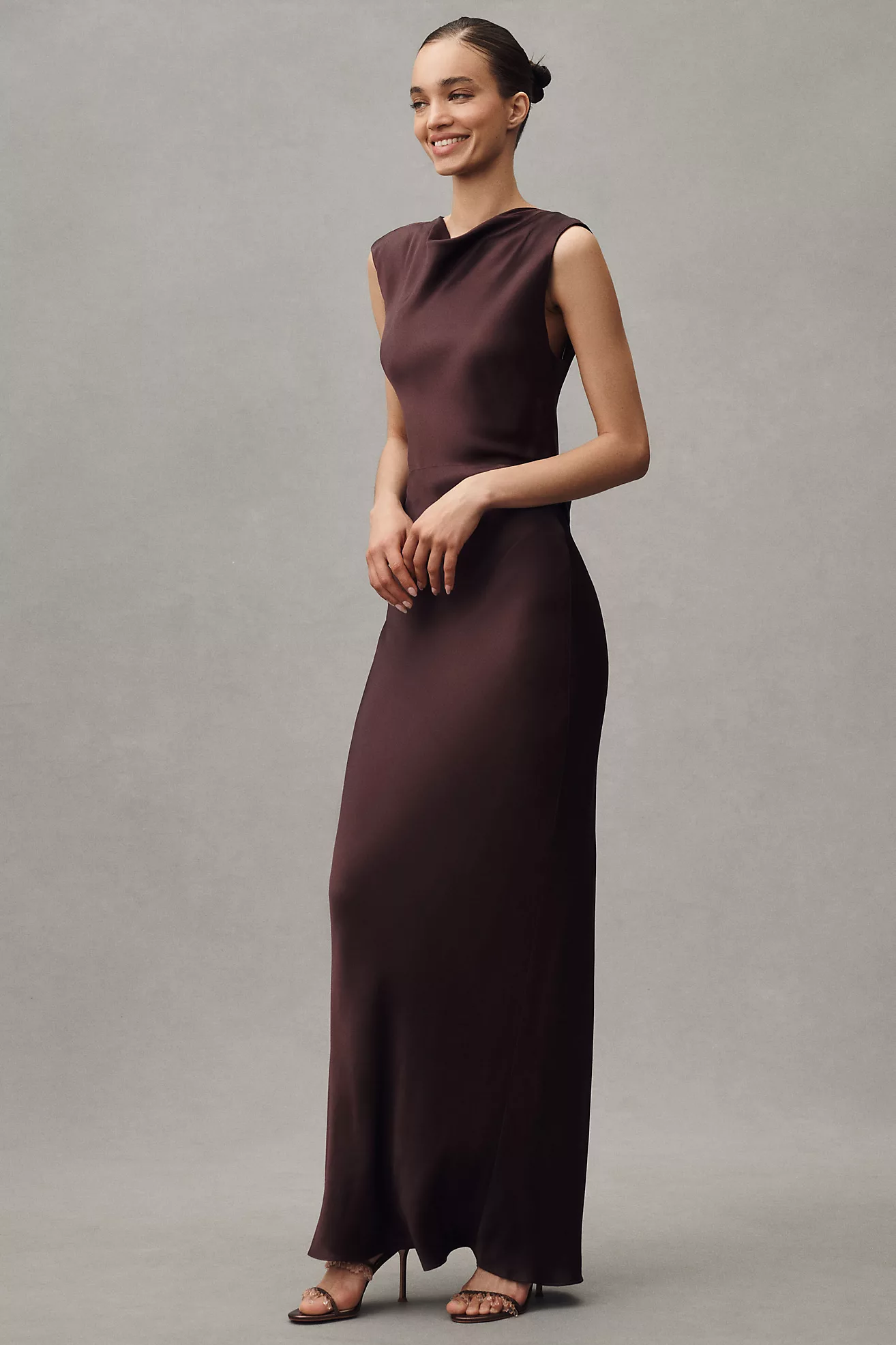 BHLDN High-Neck Satin Column Maxi Dress