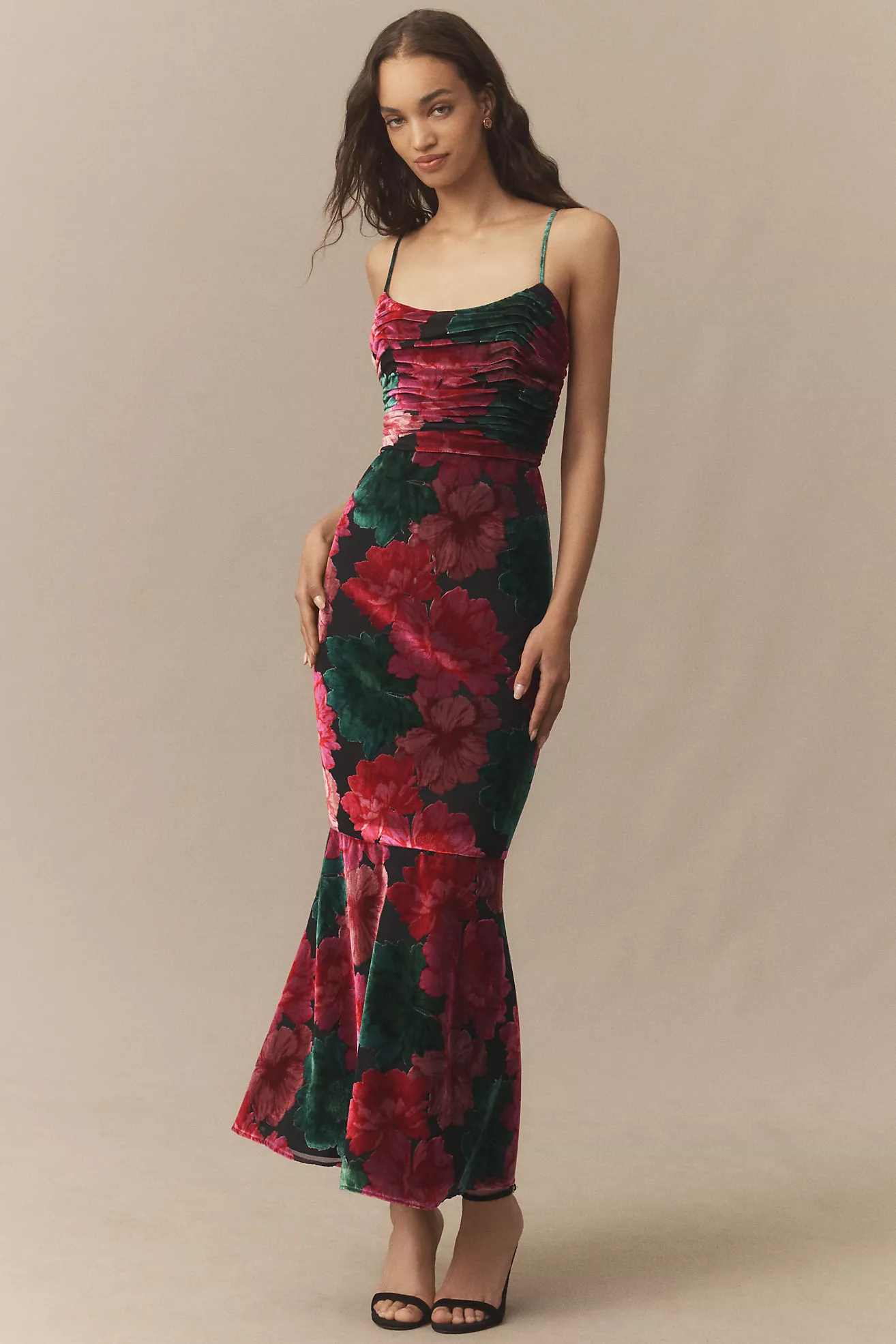 Hutch Tylia Ruched Floral Velvet Maxi Dress