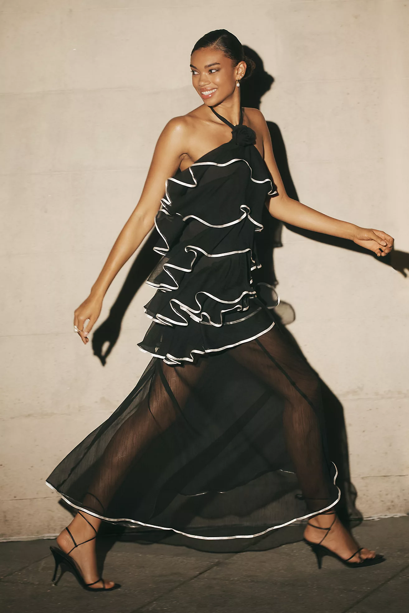 Elliatt Melissa Halter Ruffle Tiered Sheer Maxi Dress