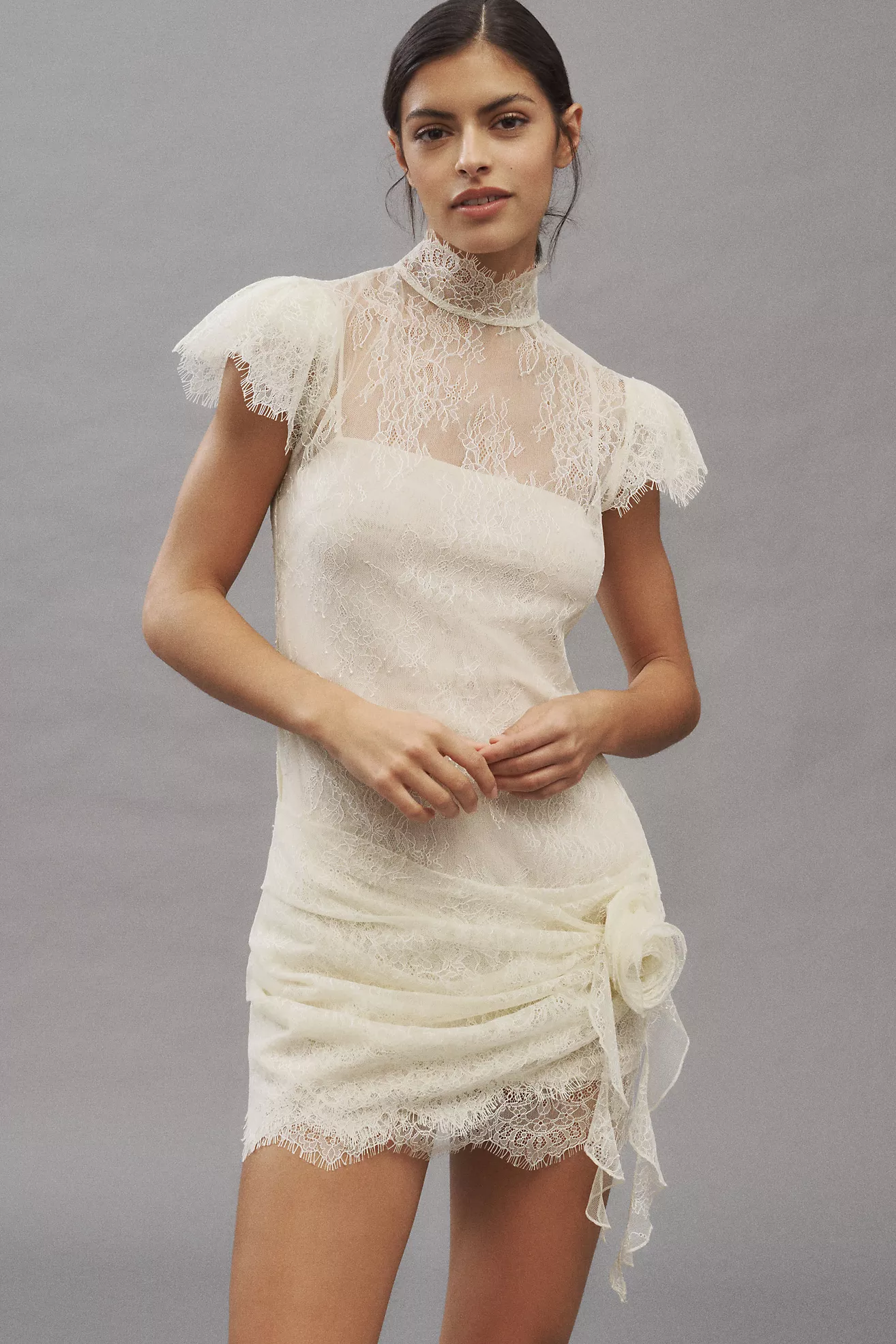 De La Vali Silentium Flounce-Sleeve Lace Mini Dress