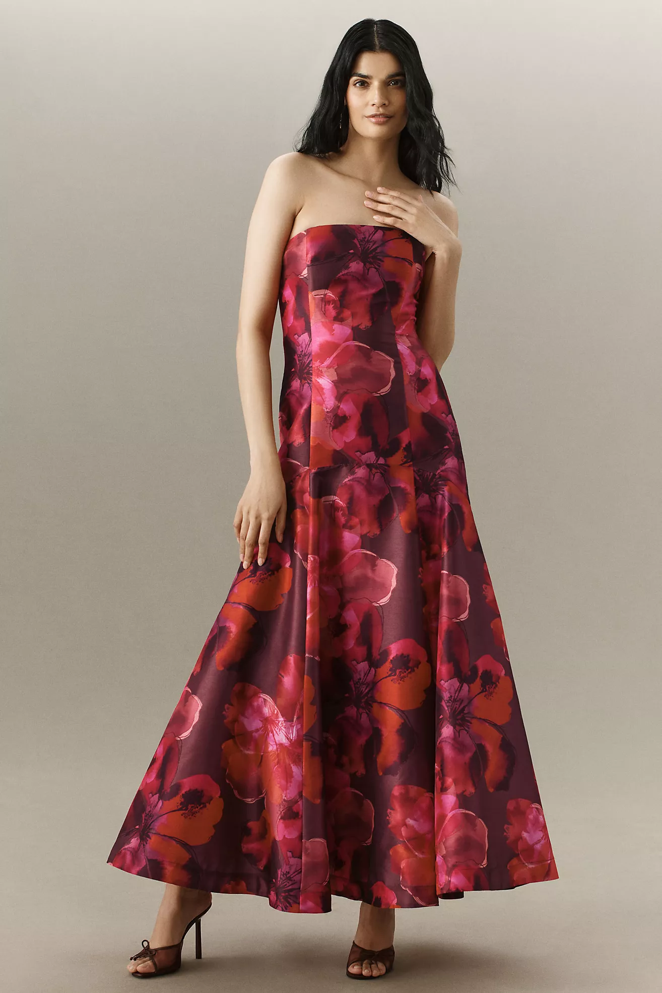 BHLDN Kira Strapless Printed Satin A-Line Maxi Dress