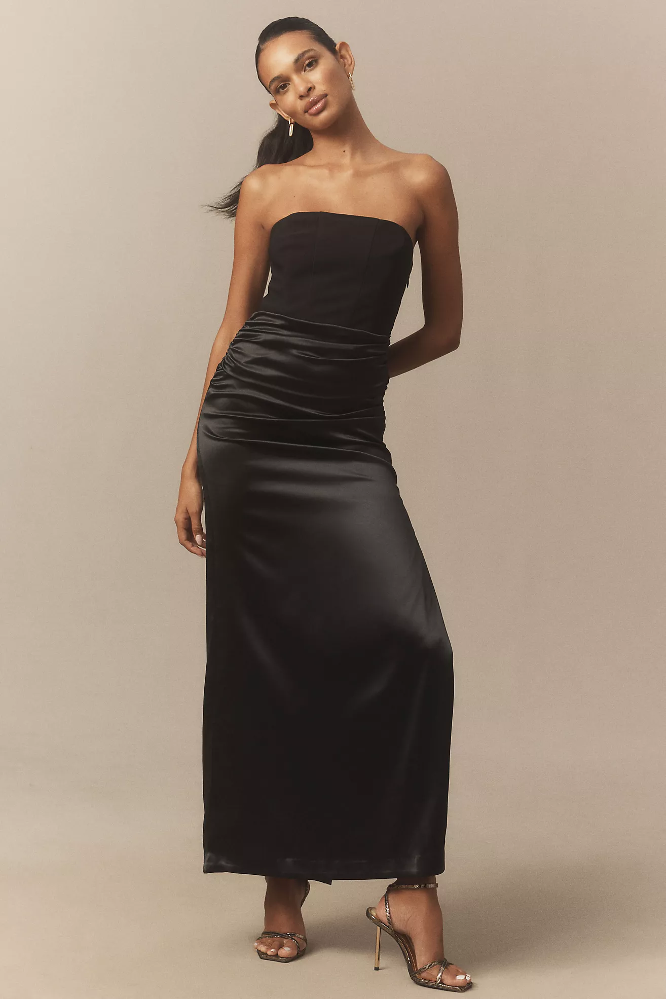 BHLDN Anastasia Strapless Satin Crepe Combo Maxi Dress