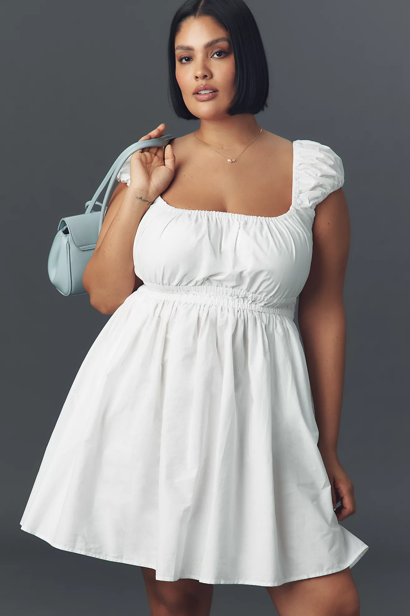 Eloquii Short-Sleeve Square-Neck Poplin Mini Dress