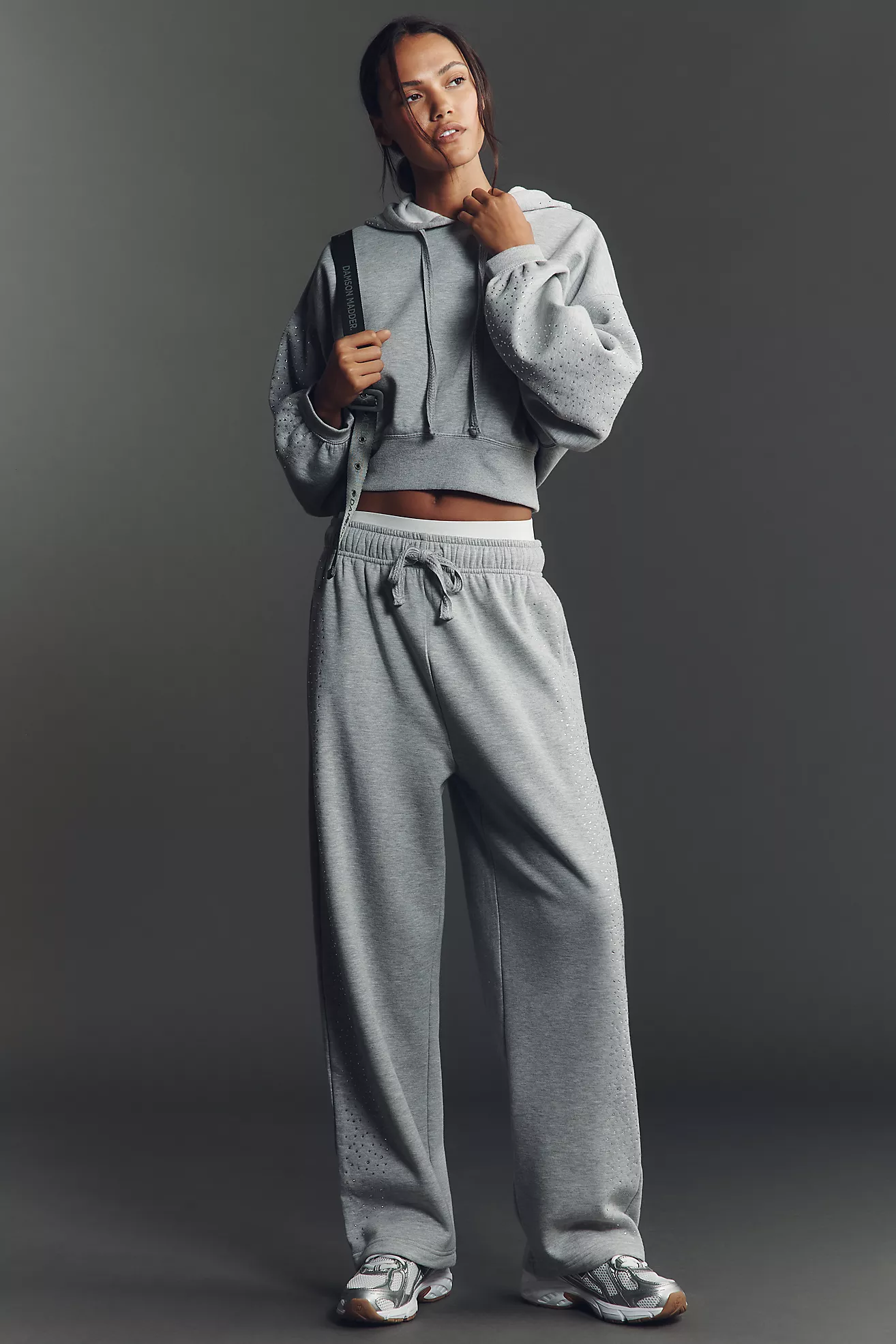Daily Practice Rhinestone Fleece Wide-Leg Drawstring Pants