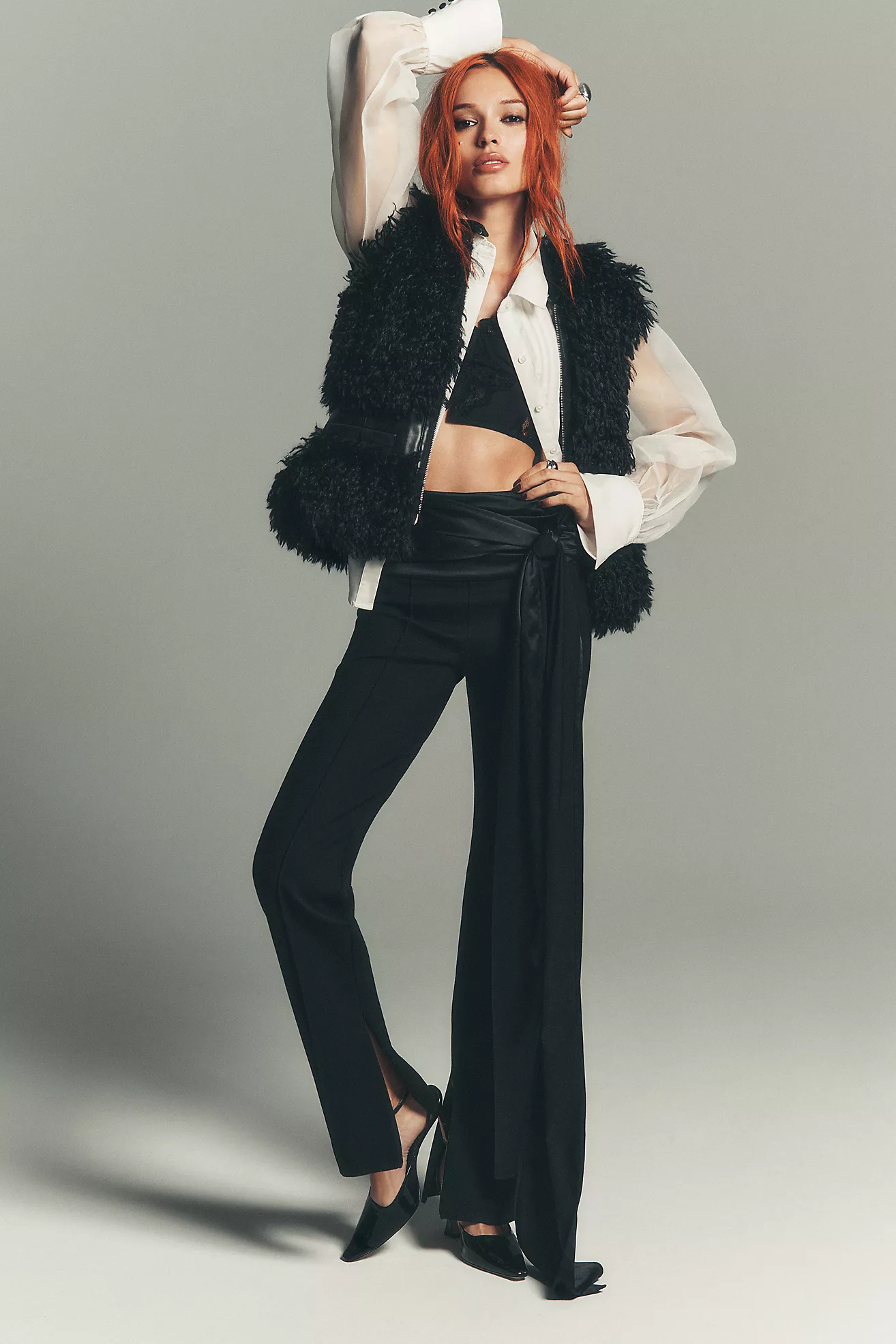 Bernardo Distressed Faux-Suede Sherpa Fleece Jacket