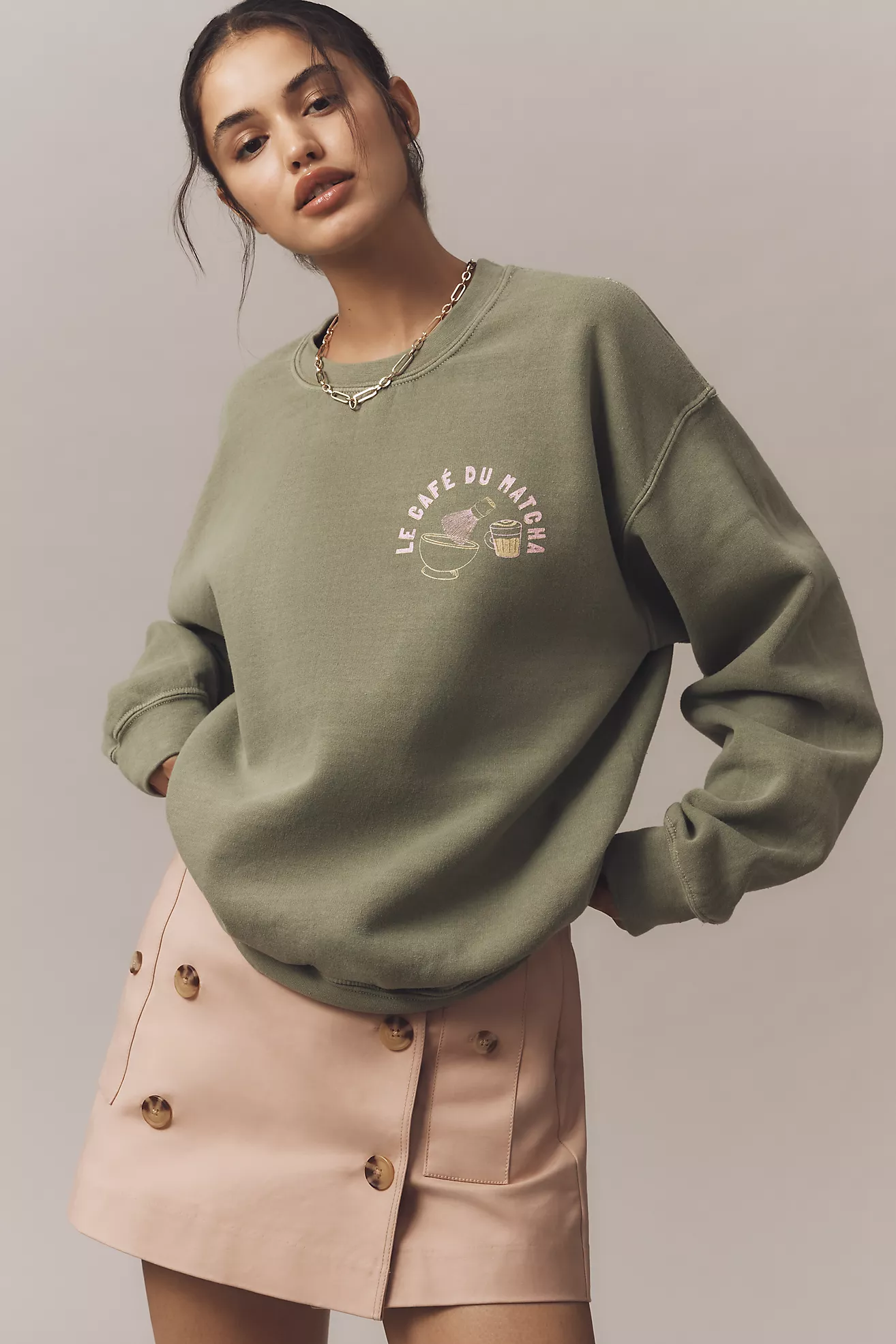 By Anthropologie Le Café du Matcha Graphic Sweatshirt