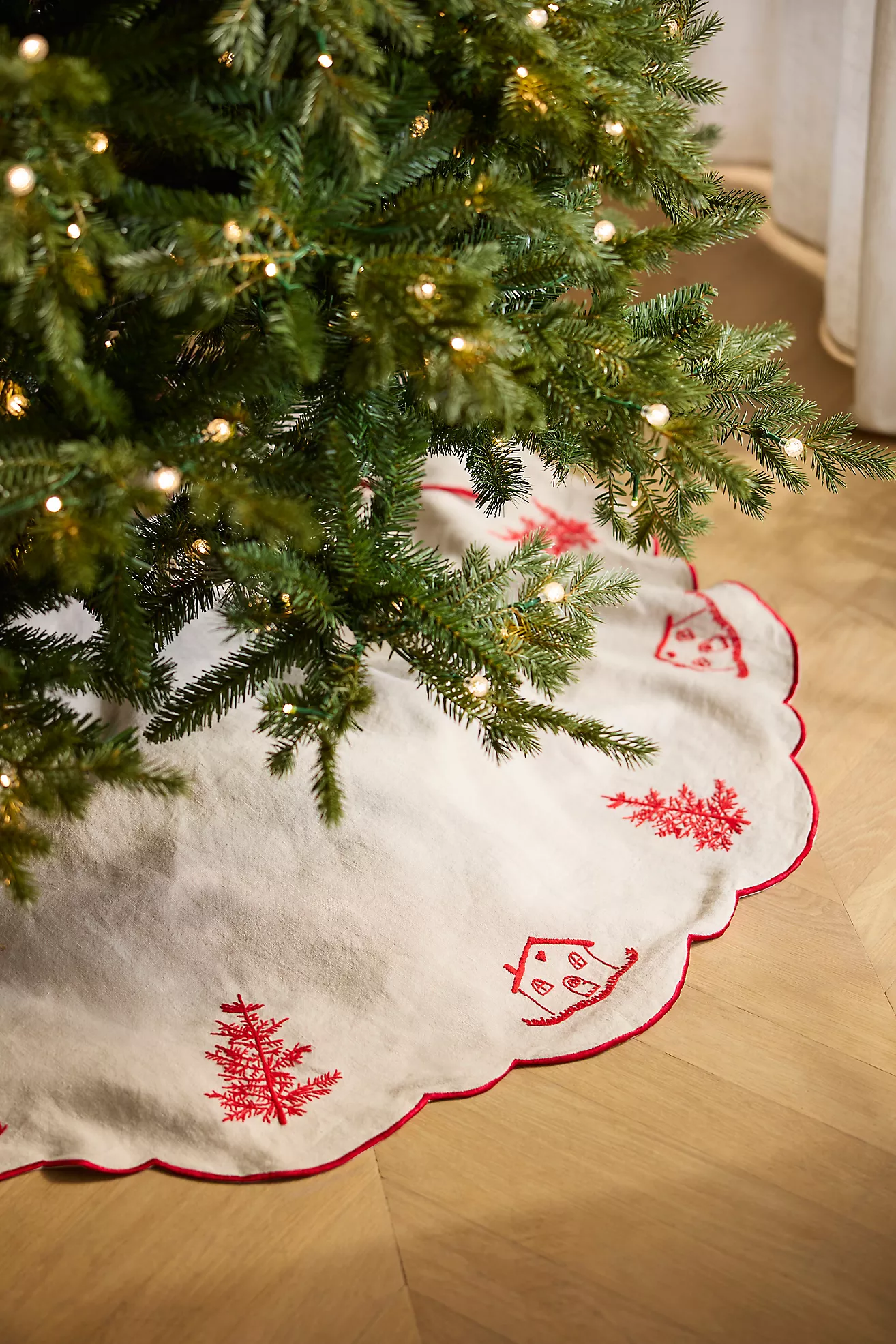 Holiday Houses Scalloped Linen Tree Skirt