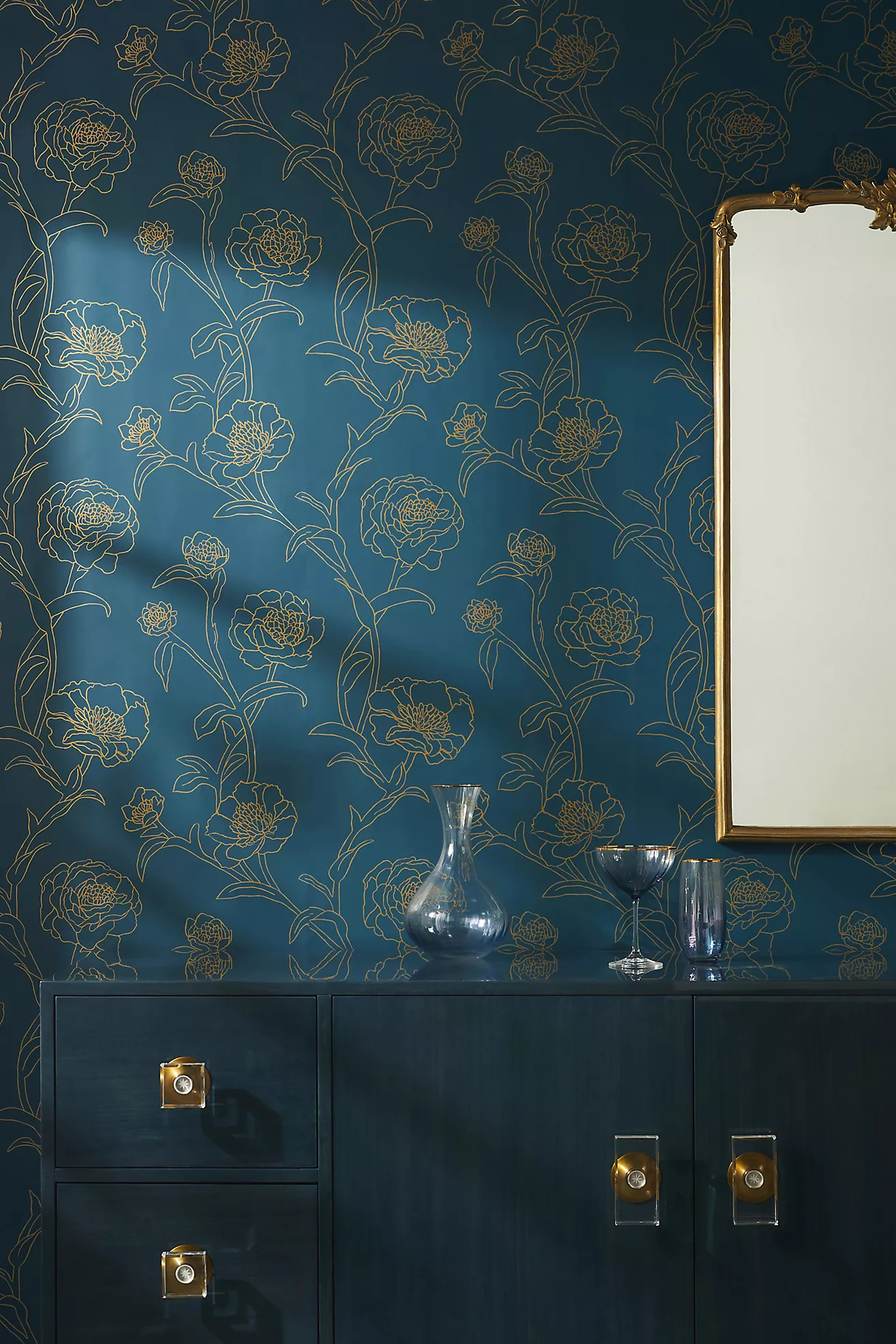 Gold Leaf Peonies Floral Peel-and-Stick Wallpaper