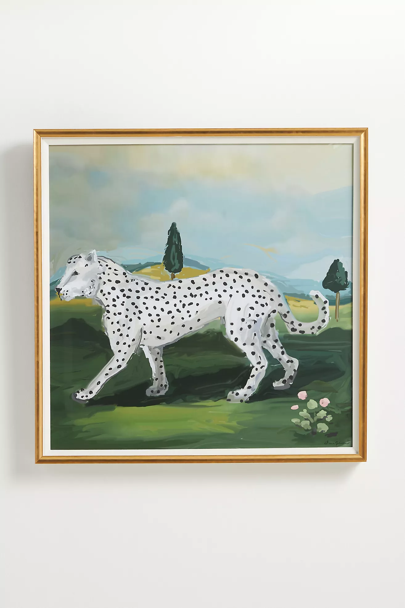 White Leopard Walking Wall Art
