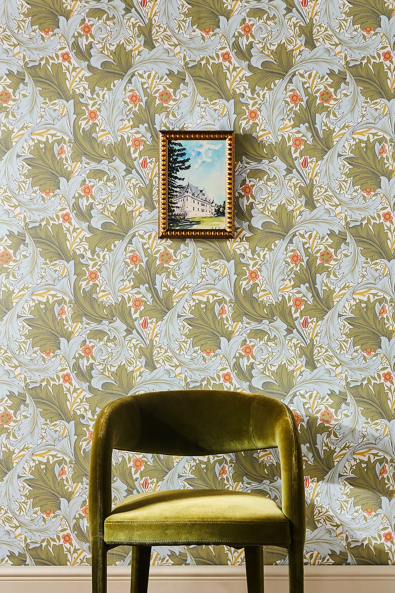 Granville Olive Leafy Vine Floral Wallpaper