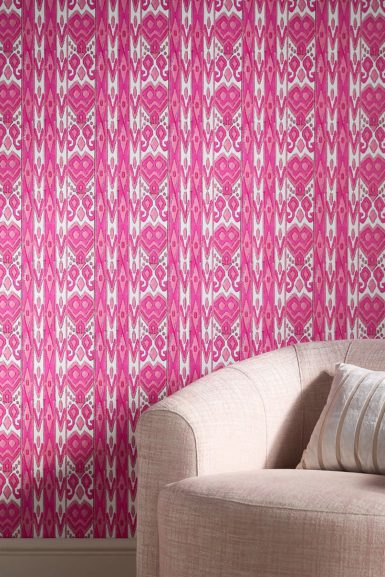 Furbish x Mitchell Black Poppy Pink Ikat Wallpaper
