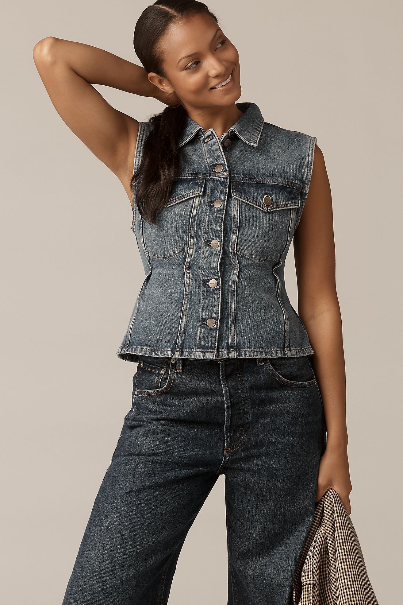 Pilcro Strong Shoulder Peplum Denim Vest