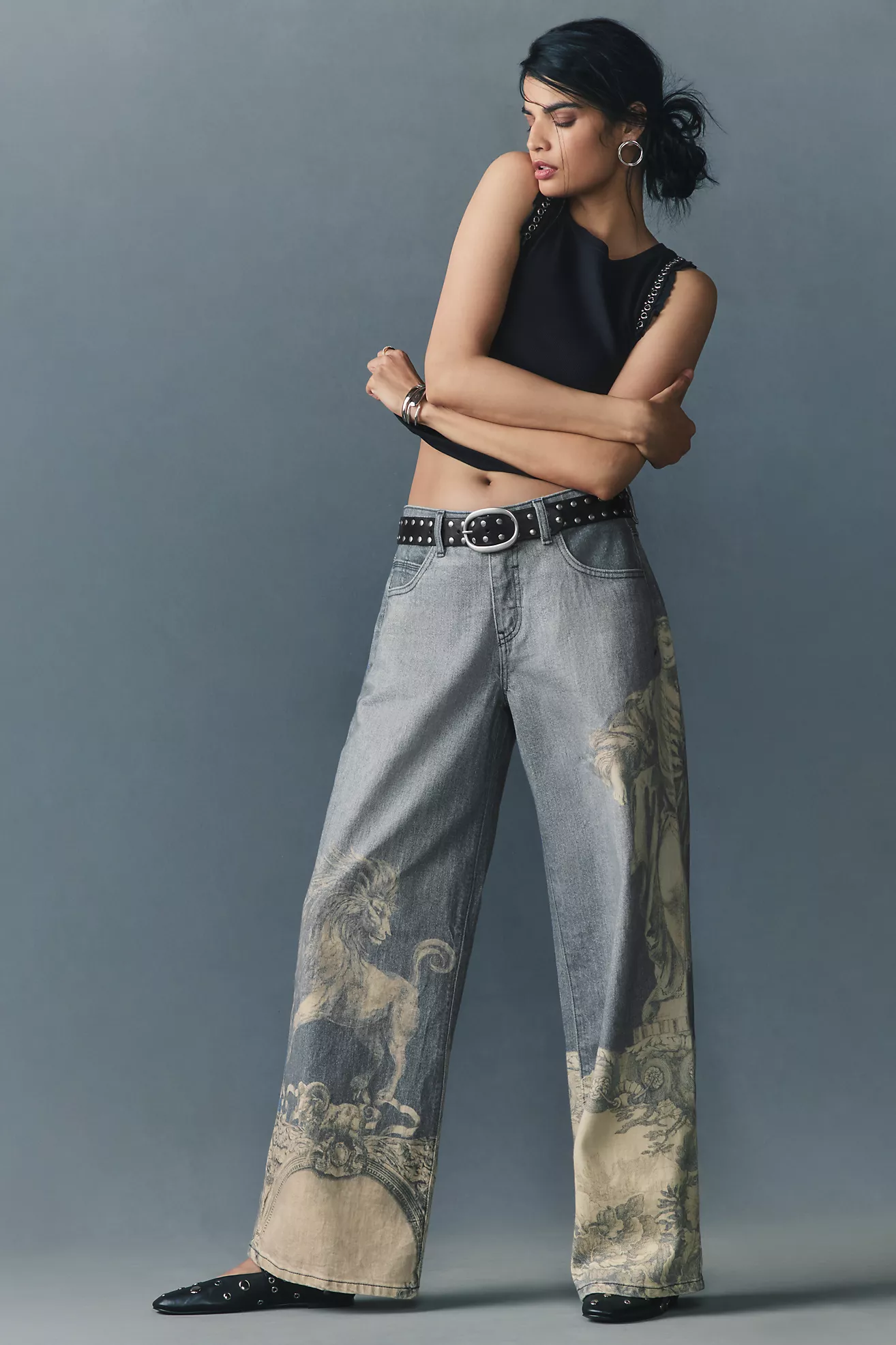 The Skater Needlepoint High-Rise Wide-Leg Jeans by Maeve