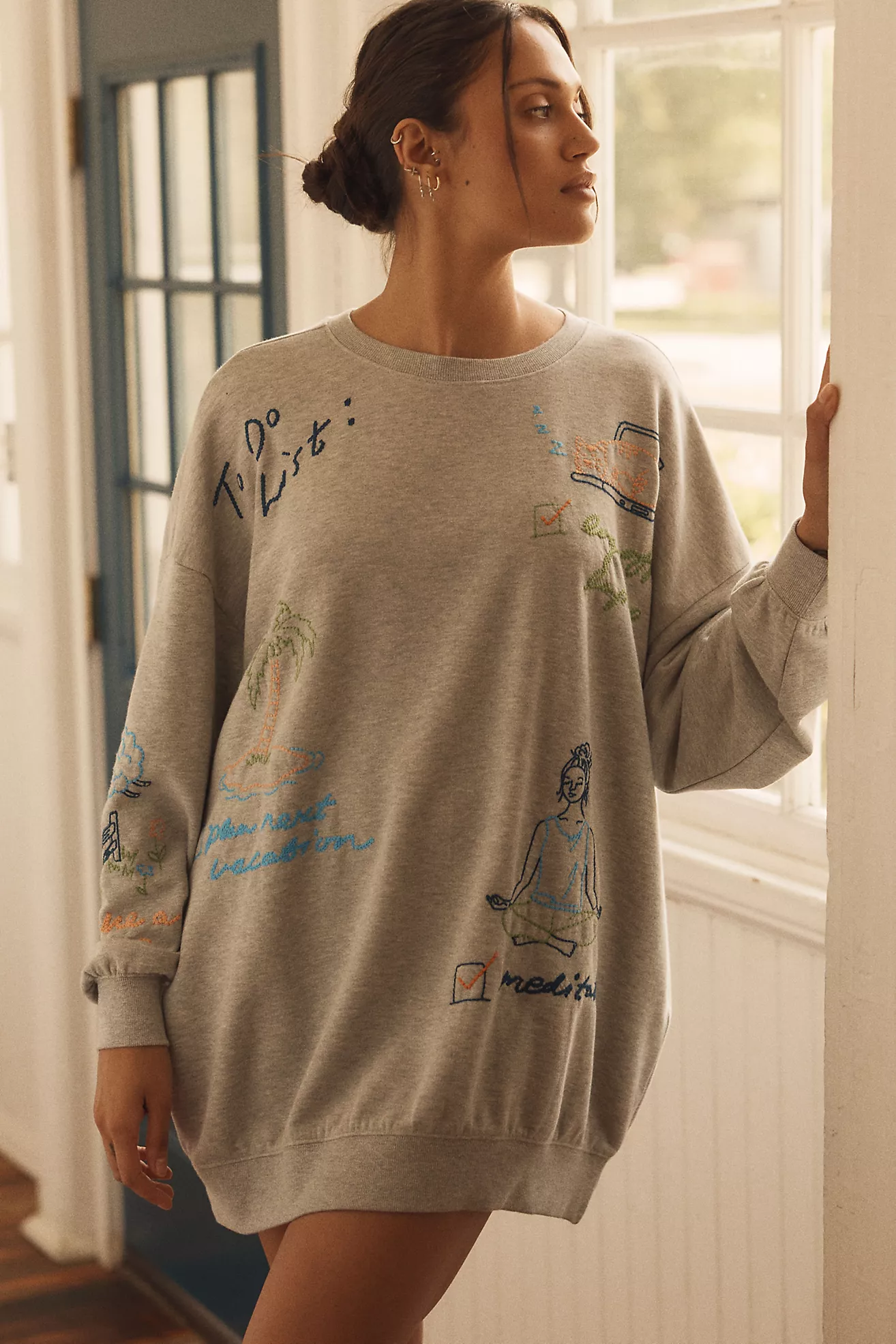 By Anthropologie Embroidered Crew-Neck Sweatshirt