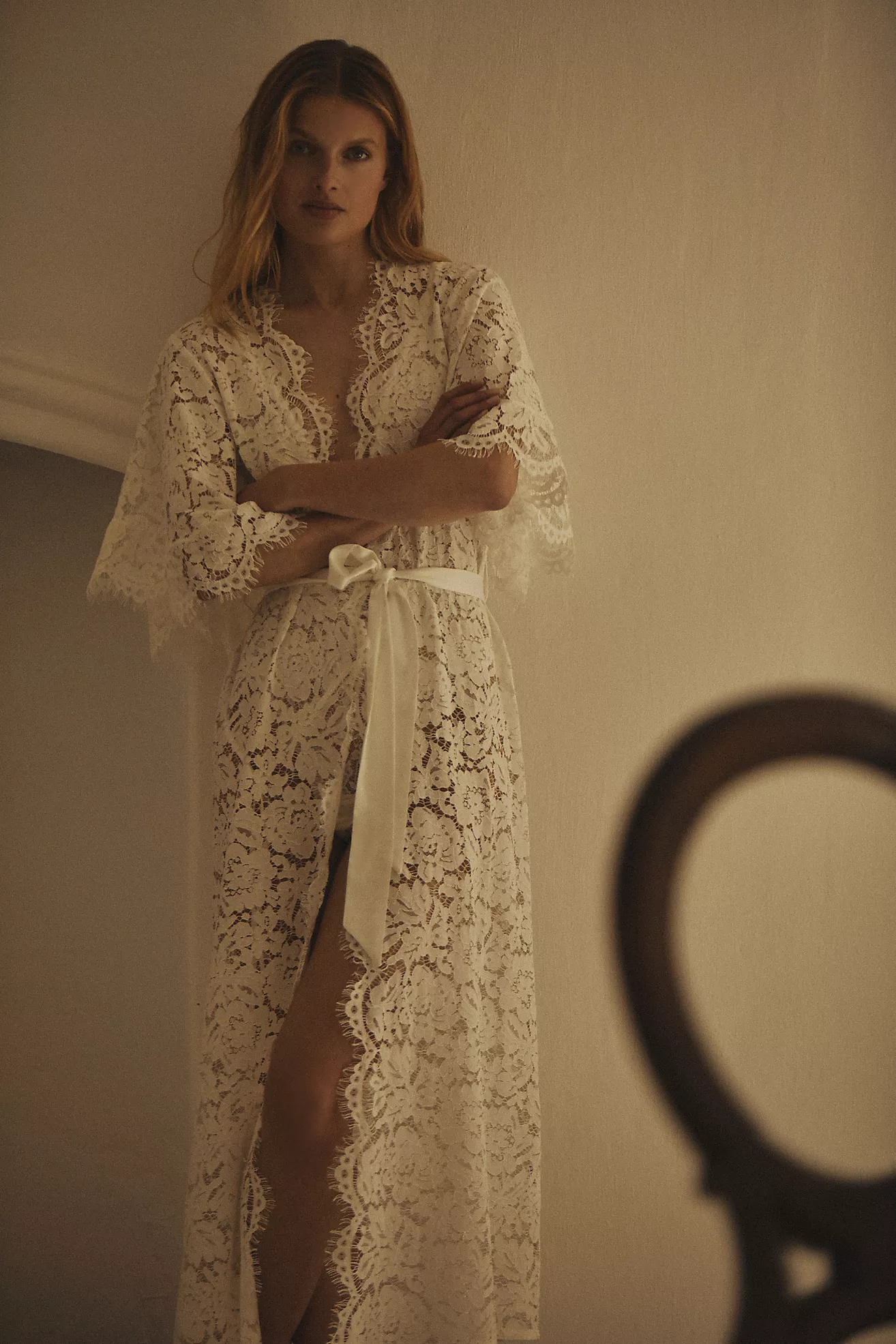 Homebodii Saskia Long Lace Robe