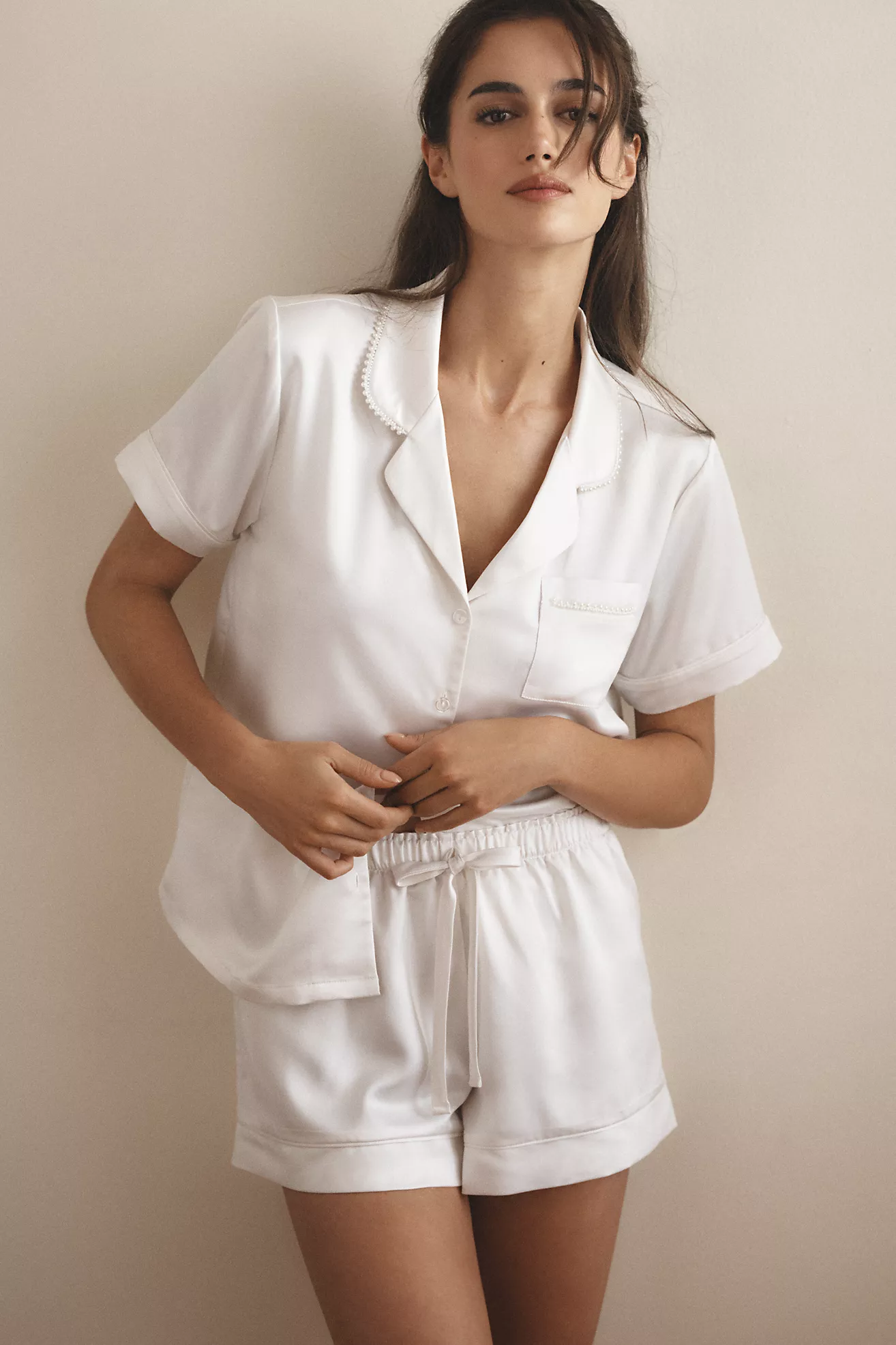 Flora Nikrooz Satin Pearl Short-Sleeve Pajama Set