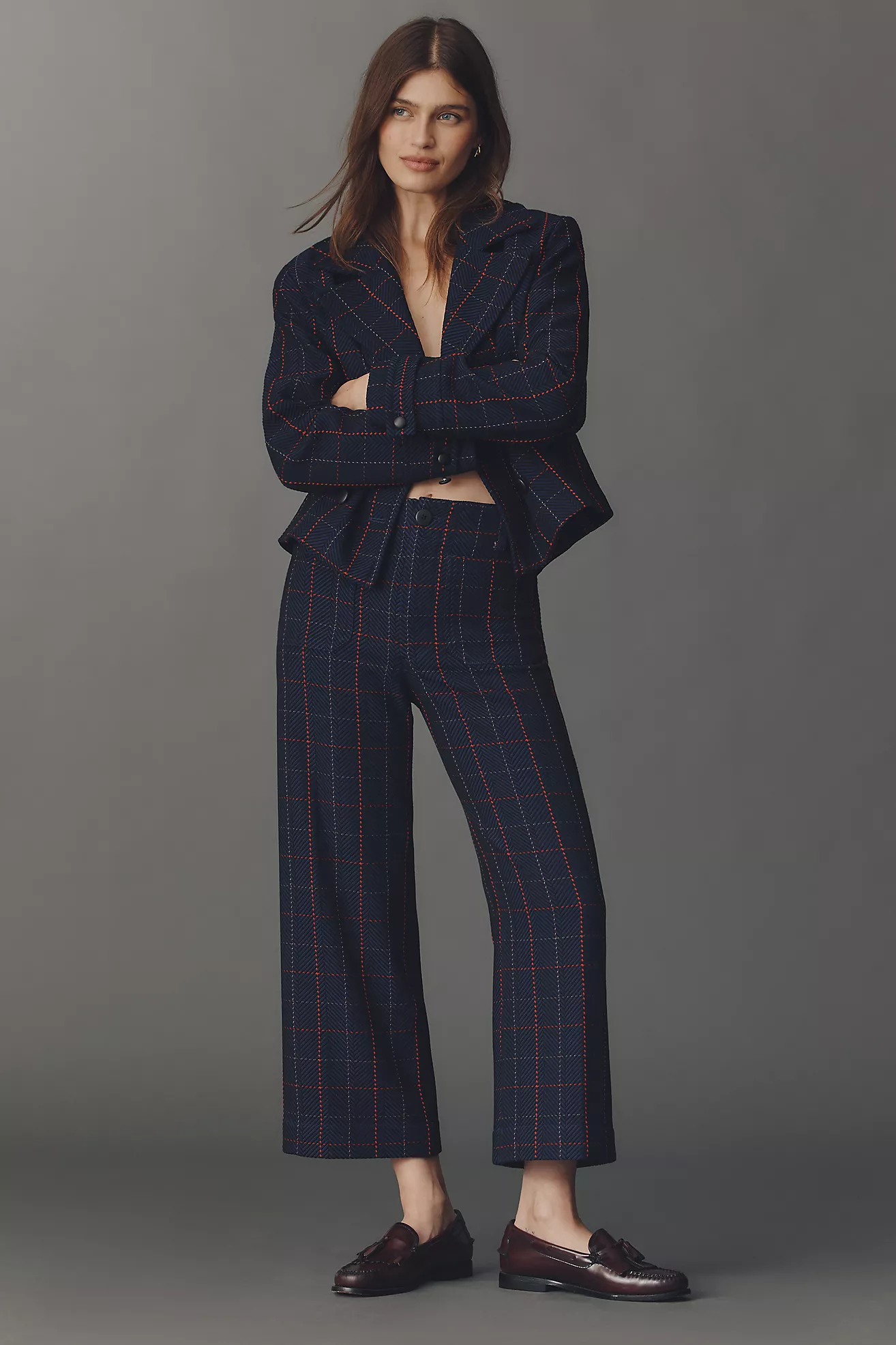 The Avery Plaid Wide-Leg Trousers by Maeve