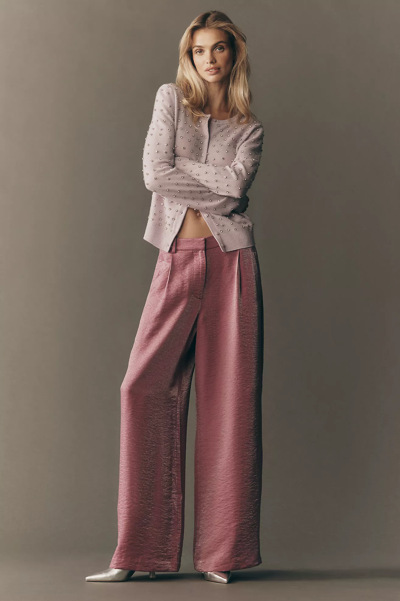 Maeve Shimmered Wide-Leg Trousers