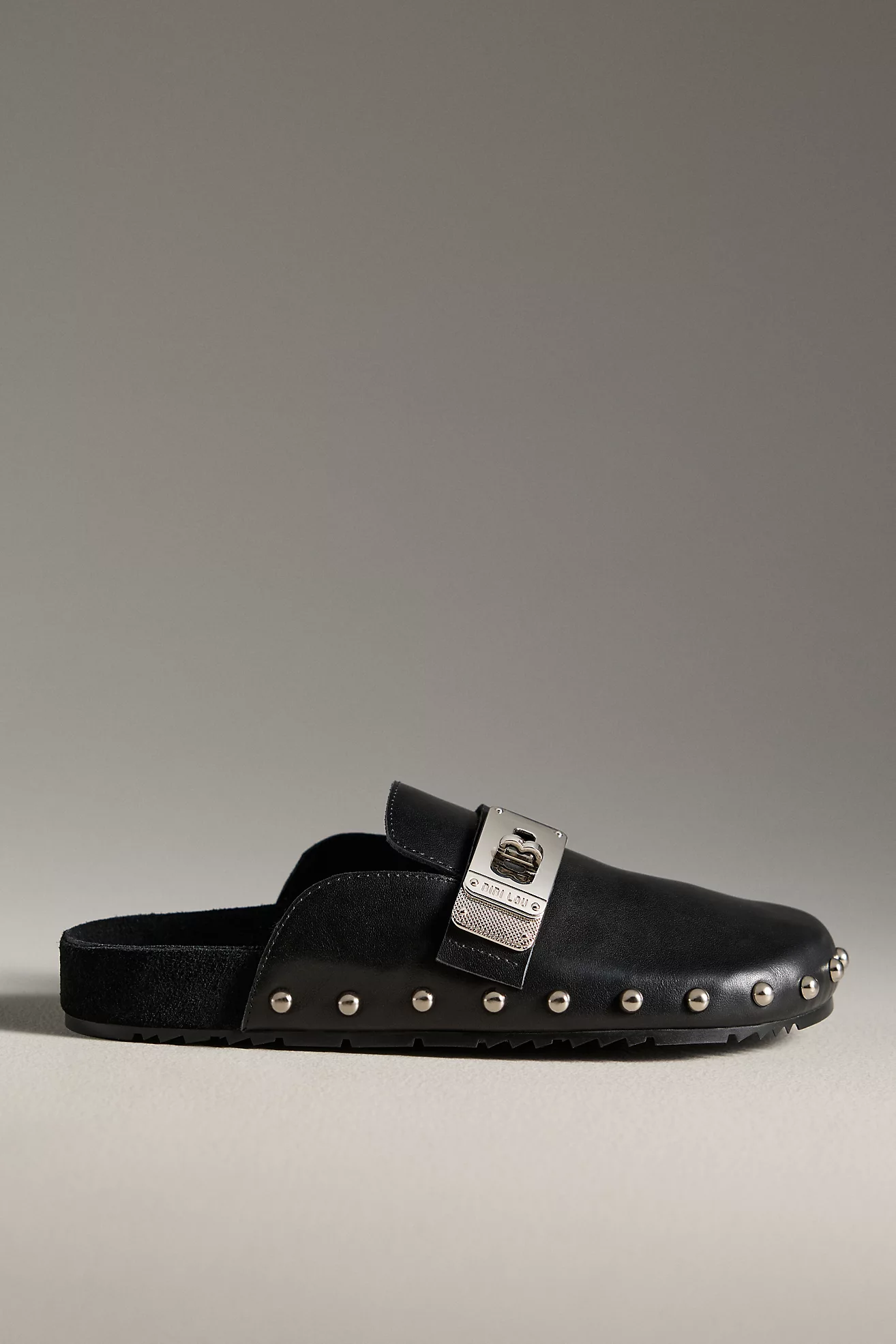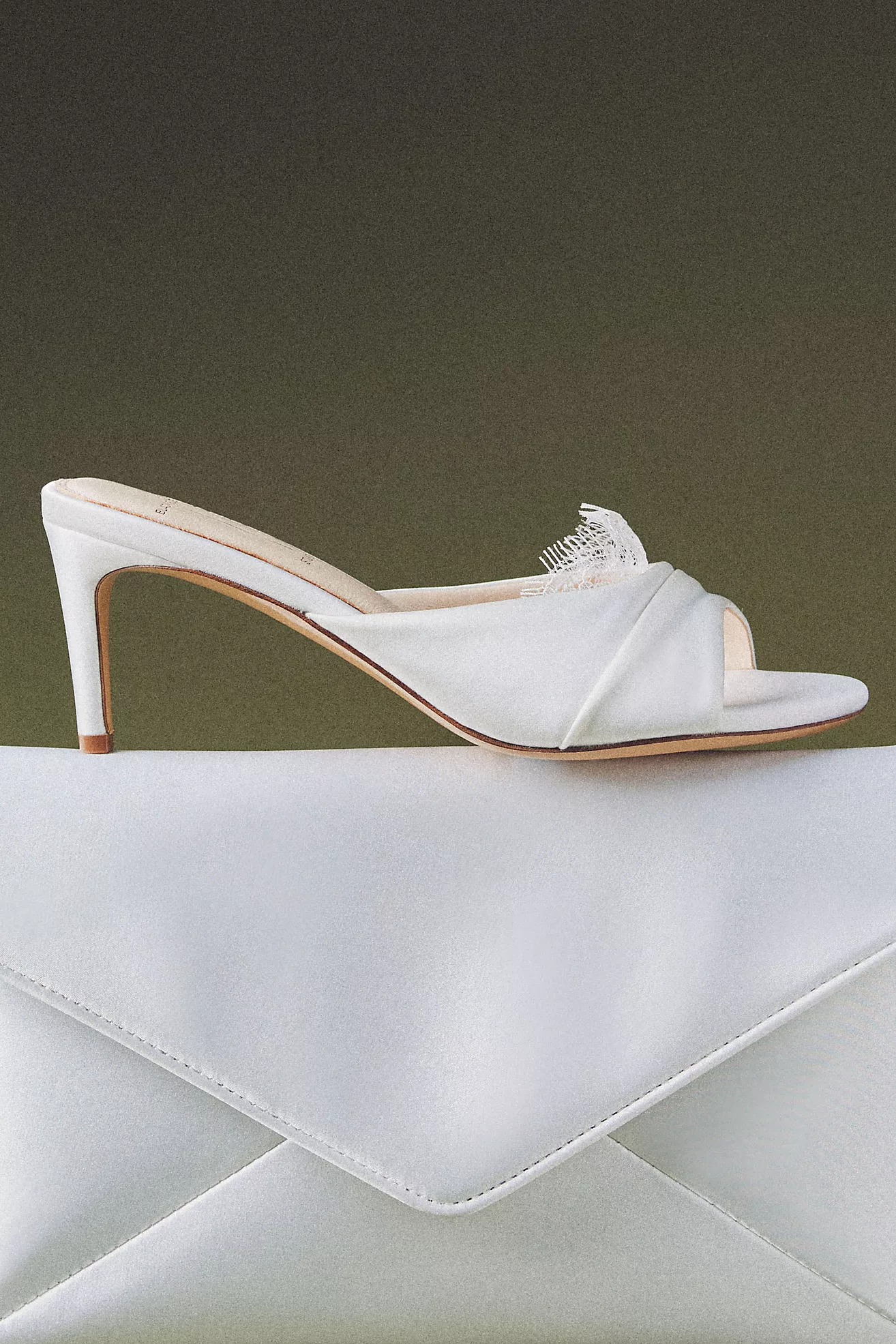 Black Suede Studio Lacey Ruched Satin Mule Heels