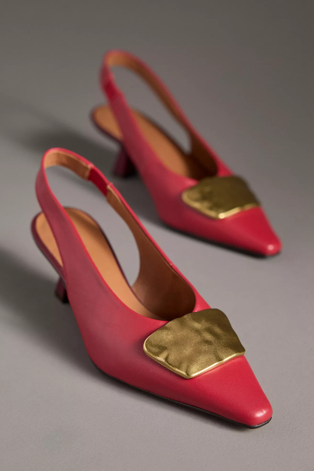 Maeve Hardware Snip-Toe Slingback Kitten Heels