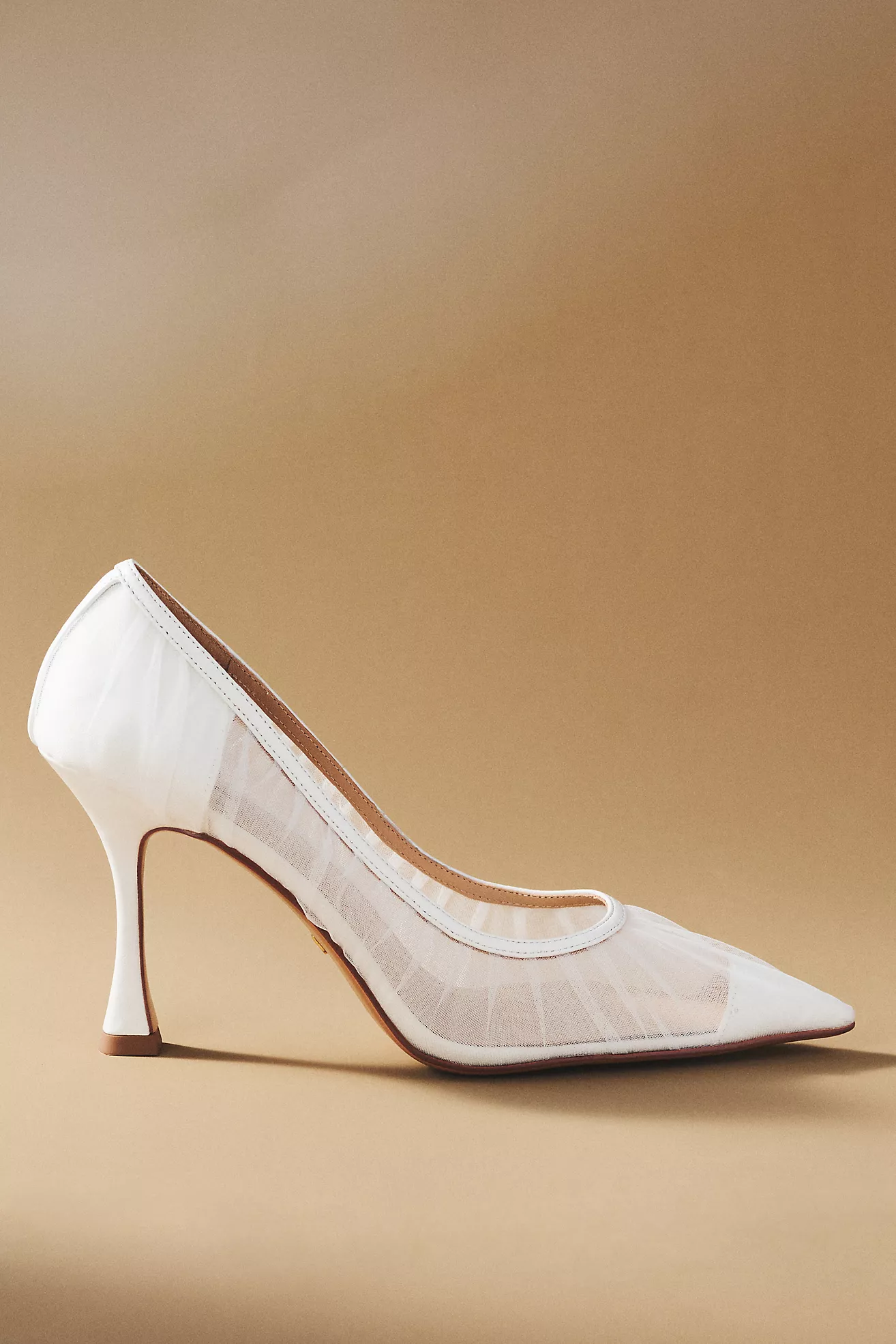 Lola Cruz Pointed-Toe Lace Bow Heels