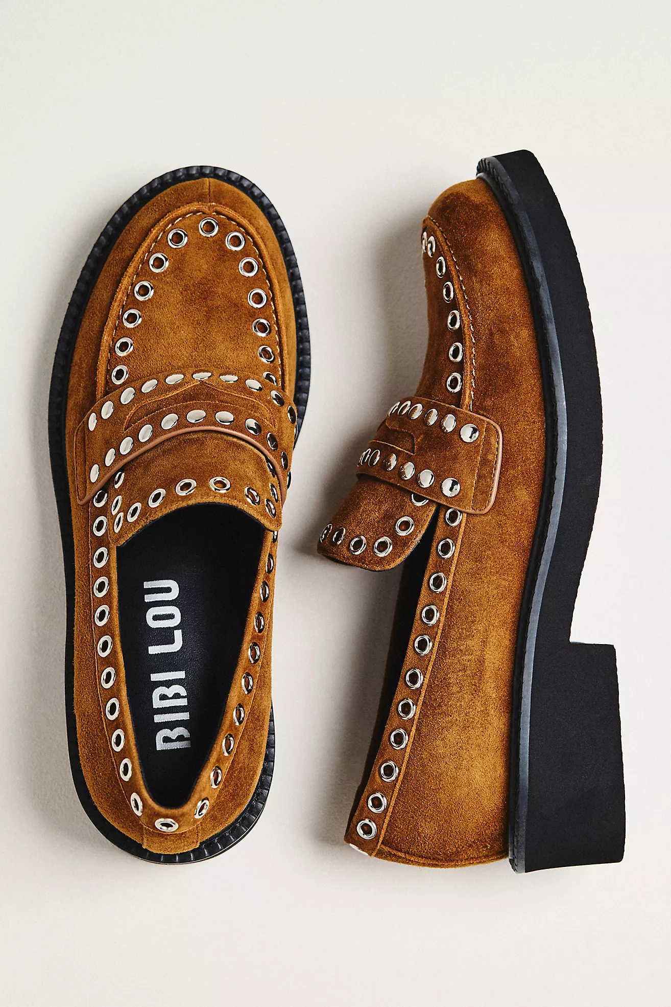 Bibi Lou Suede Studded Grommet Loafers