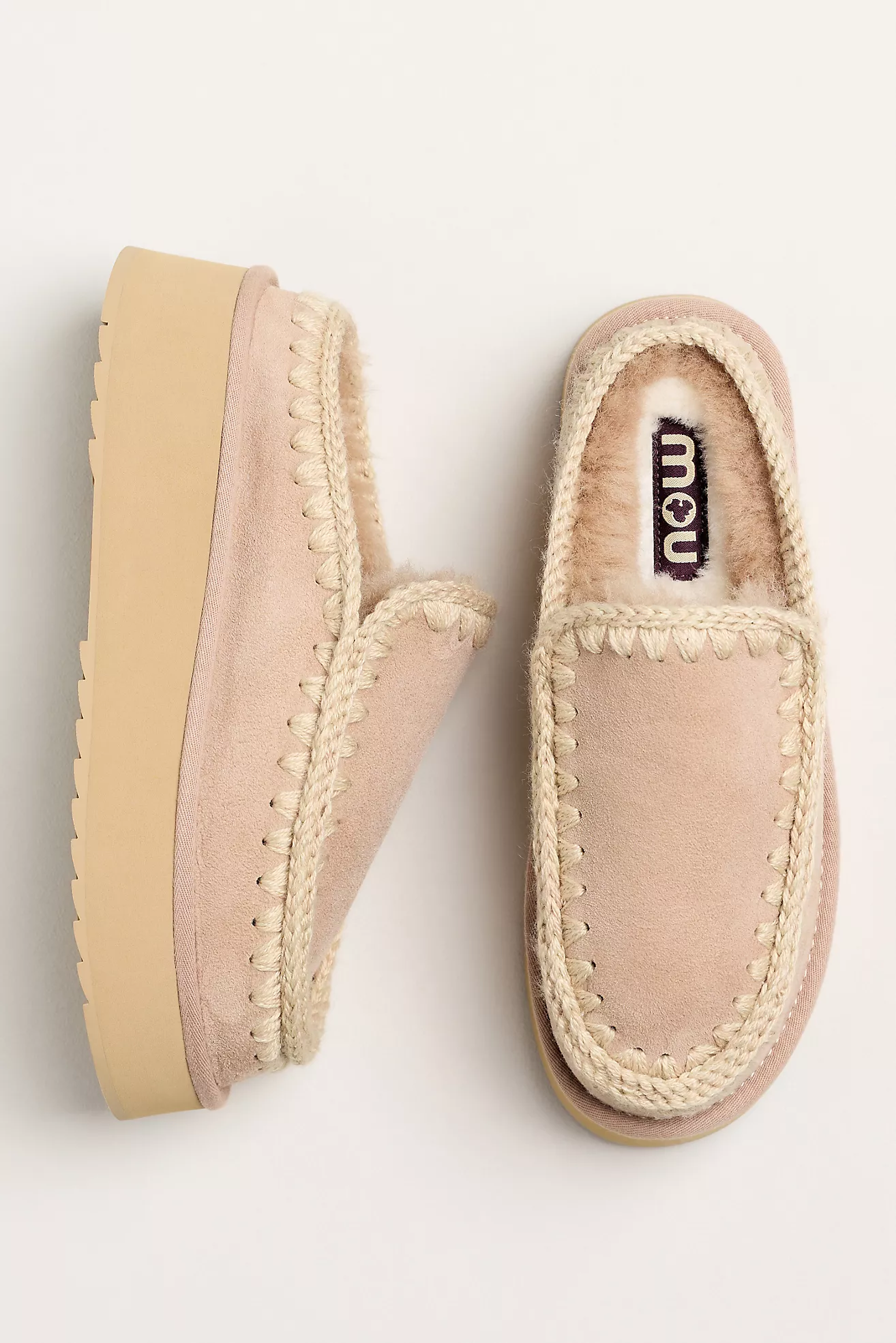 MOU Sheepskin Platform Clogs