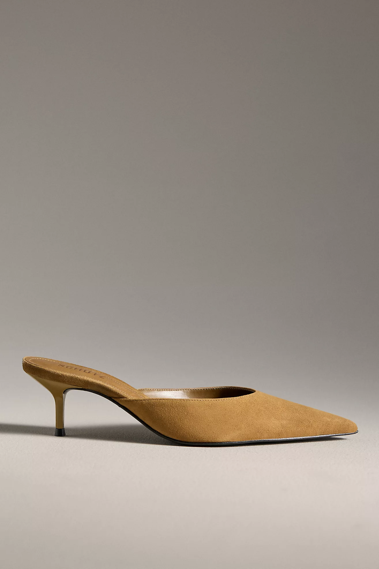 Schutz Julie Suede Pointed-Toe Kitten-Heel Mules