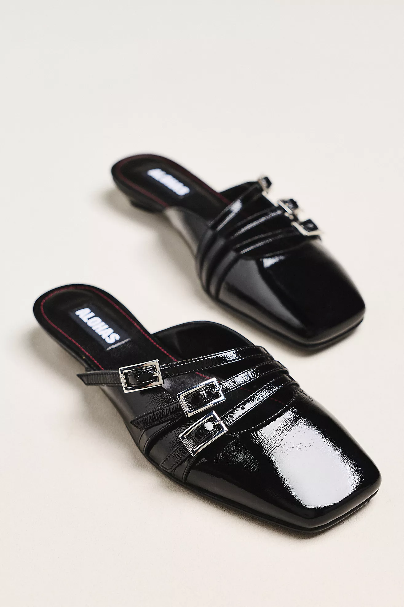 ALOHAS Penelope Onix Black Leather Kitten-Heel Mules